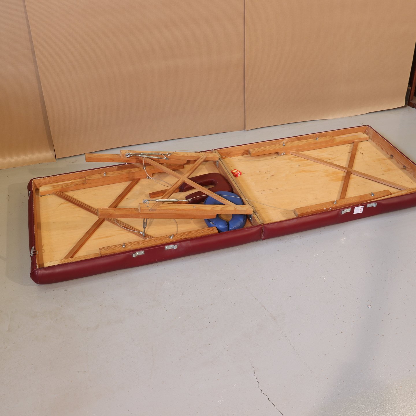 Sammenklappelig masagebriks polstret med kunstlæder,