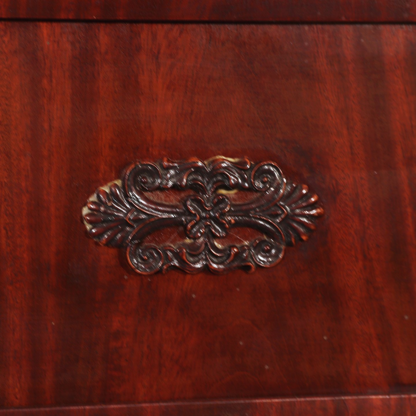 Spejl i ramme af mahogni m. opsats, OBS div. finerfejl,