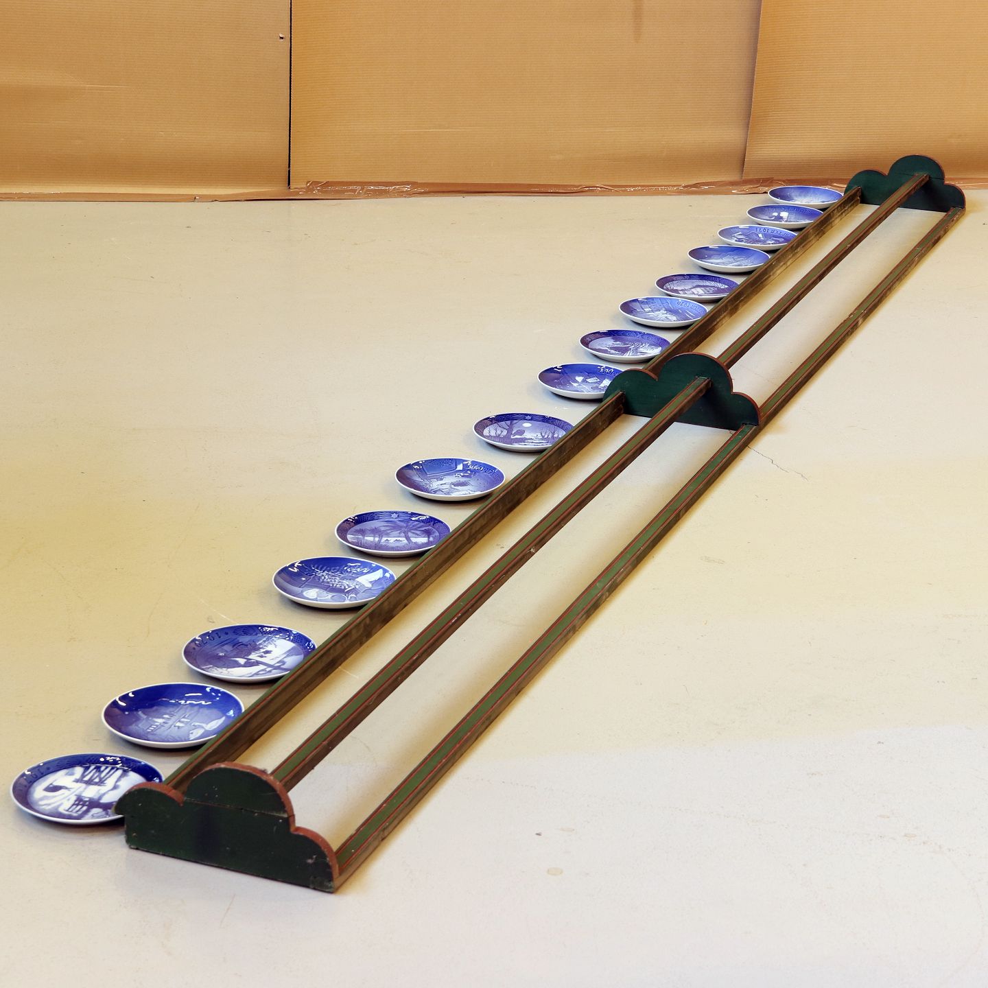 Malet tallerkenrække, (HxBxD 31x360x13 cm), 1950-1960