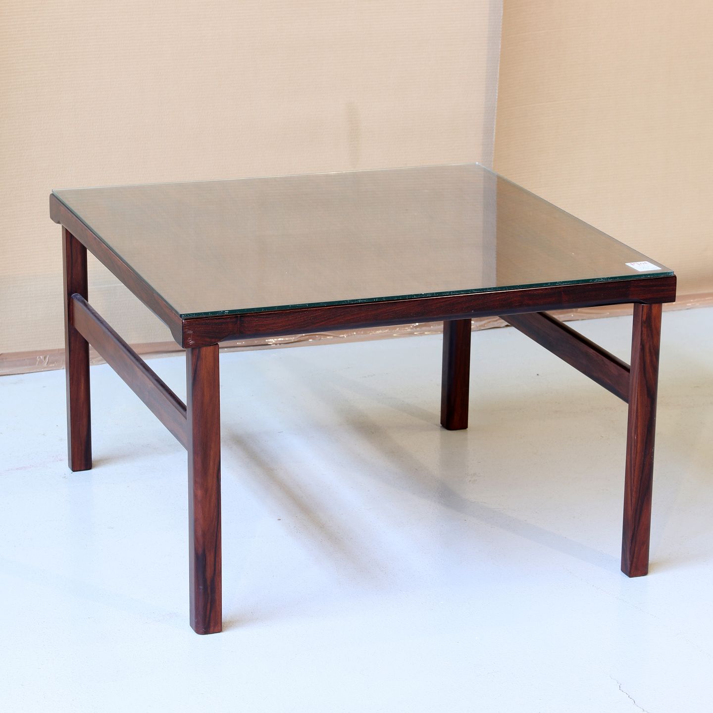 Kvadratisk sofabord i fineret og lakeret palisander m. glasplade, (HxD 50x80 cm), 1980-1990 Emne nummer: 42544