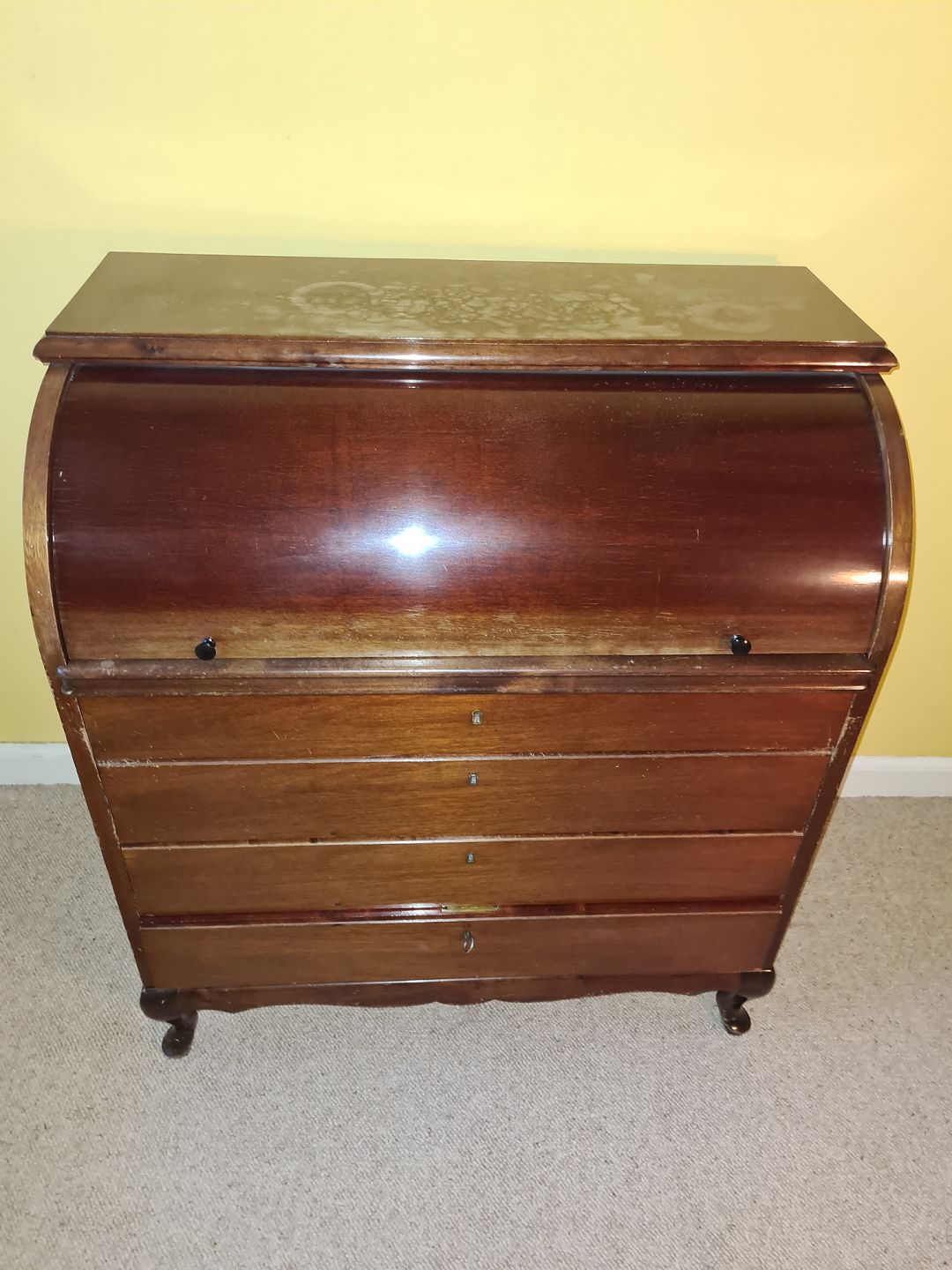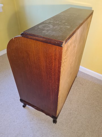 Funktionsdygtigt Chatol i mahogni fra 1930´erne. Fremstår lettere solafbleget med lidt brugsspor på toppen i form af fugtskjolder. HxBxD 101x89x50 cm Emne nummer: 60391