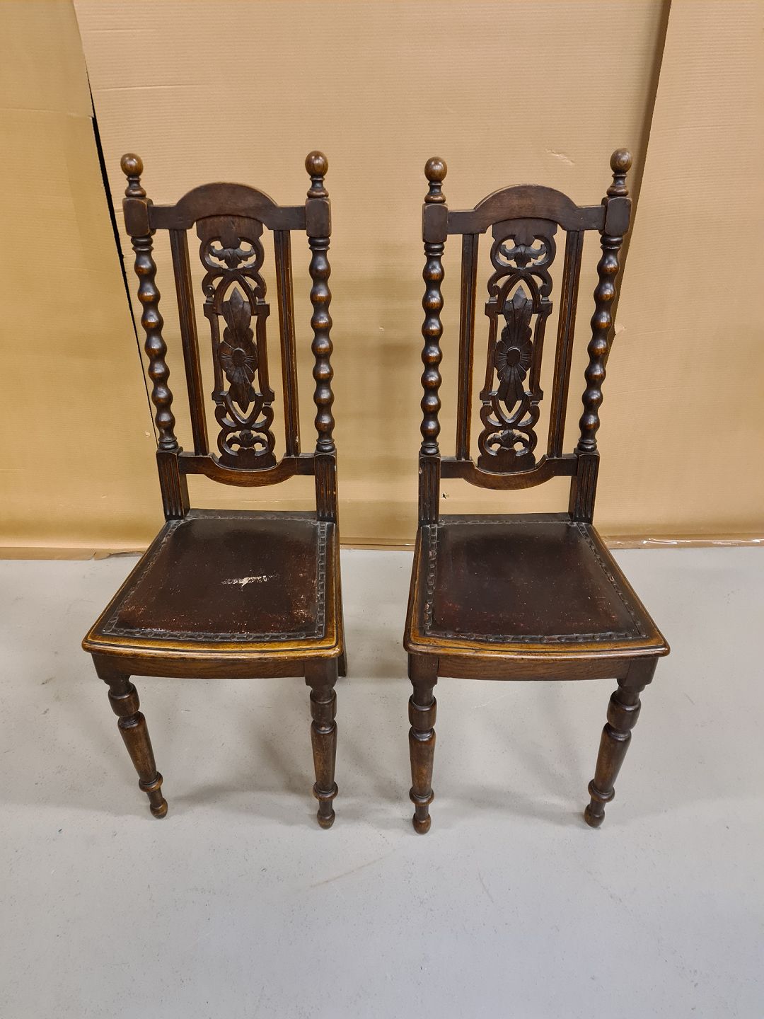 2 Stole i egetræ fra 1920erne. De er en smule led løse.