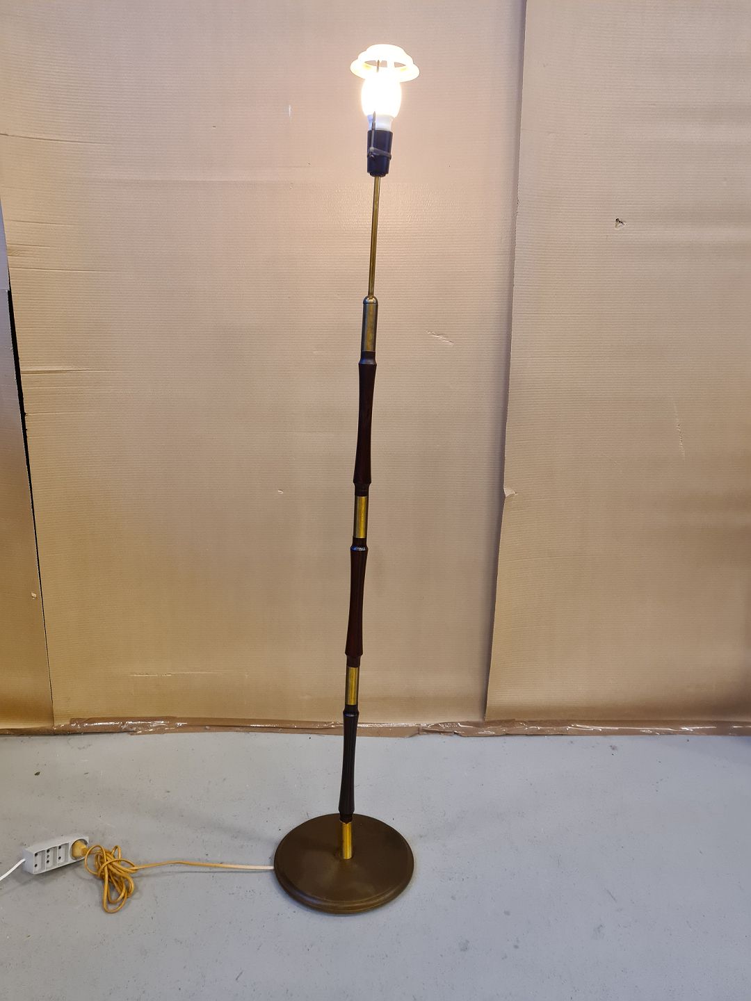 Standerlampe i bejset bøgetræ fra 1970erne.