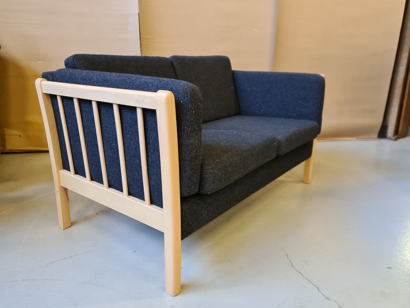 Sofa i bøgetræ med hynder i sort uld betræk fra 1990erne.