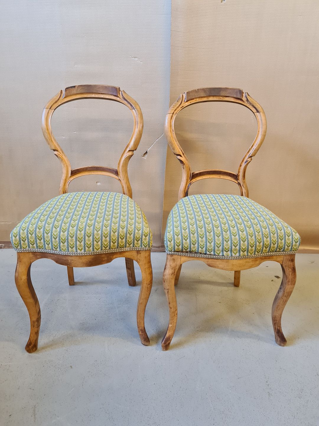 2 Salonstole i mahogni og bøgetræ fra 1900erne.