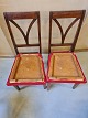 4 Stole i bøgetræ fra 1910erne. De skal limes og betrækket er godt brugt. Højde 97cm Sædehøjde 47cm Emne nummer: 71355