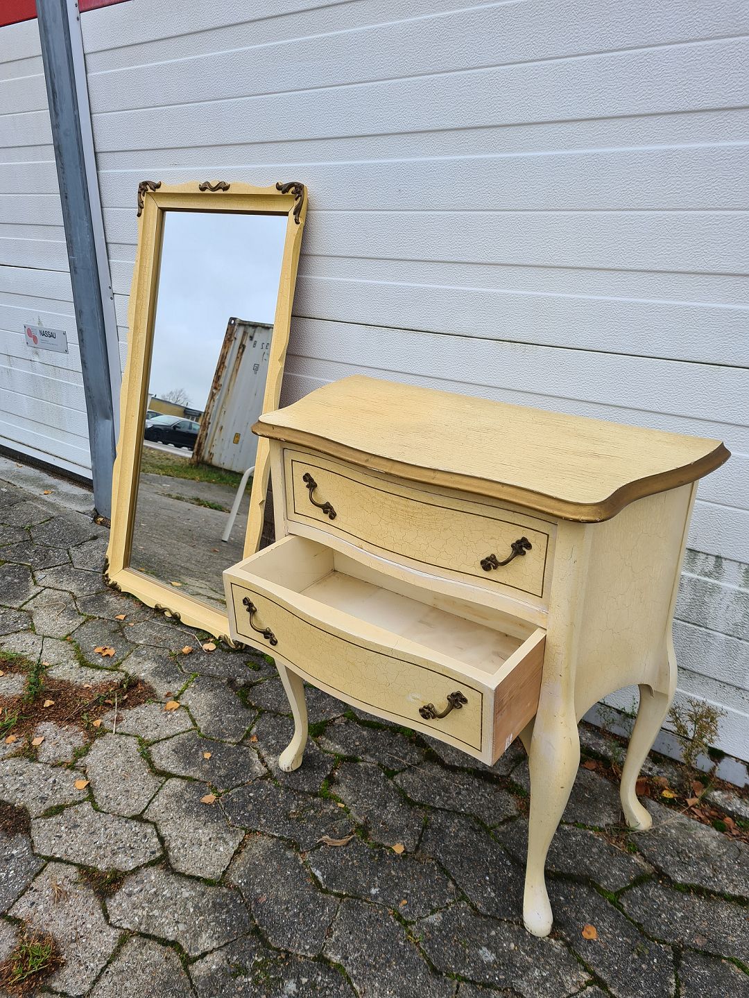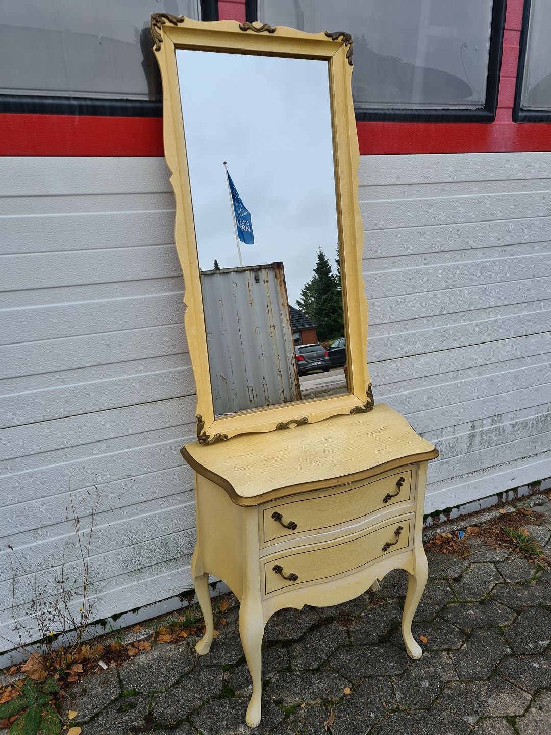 Malet spejl og konsol fra 1980erne.