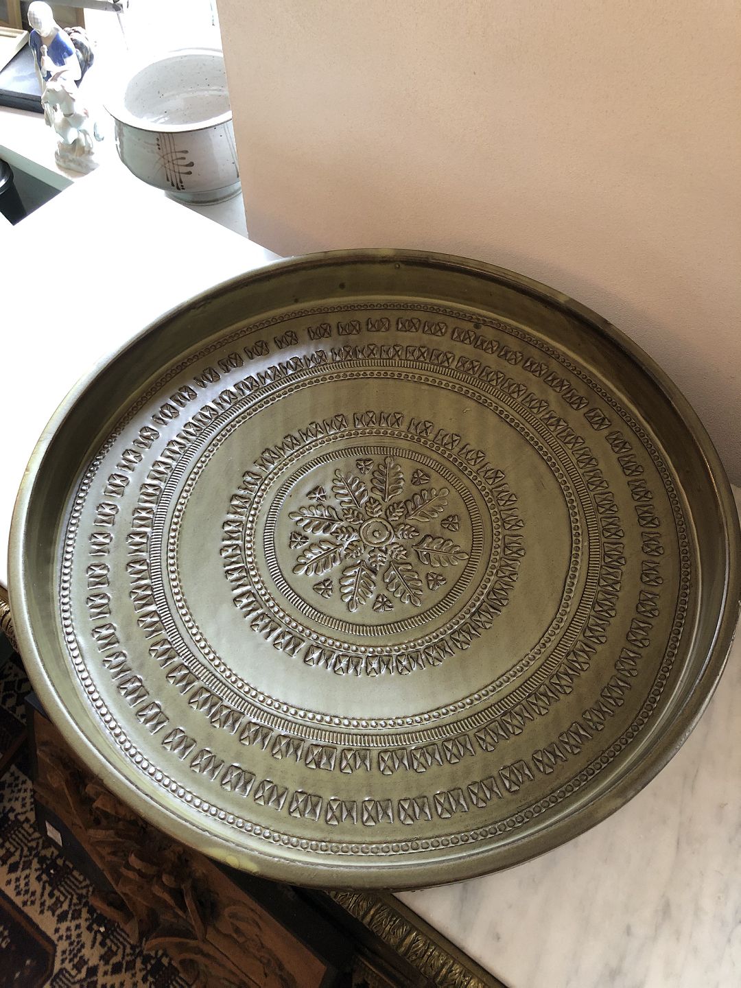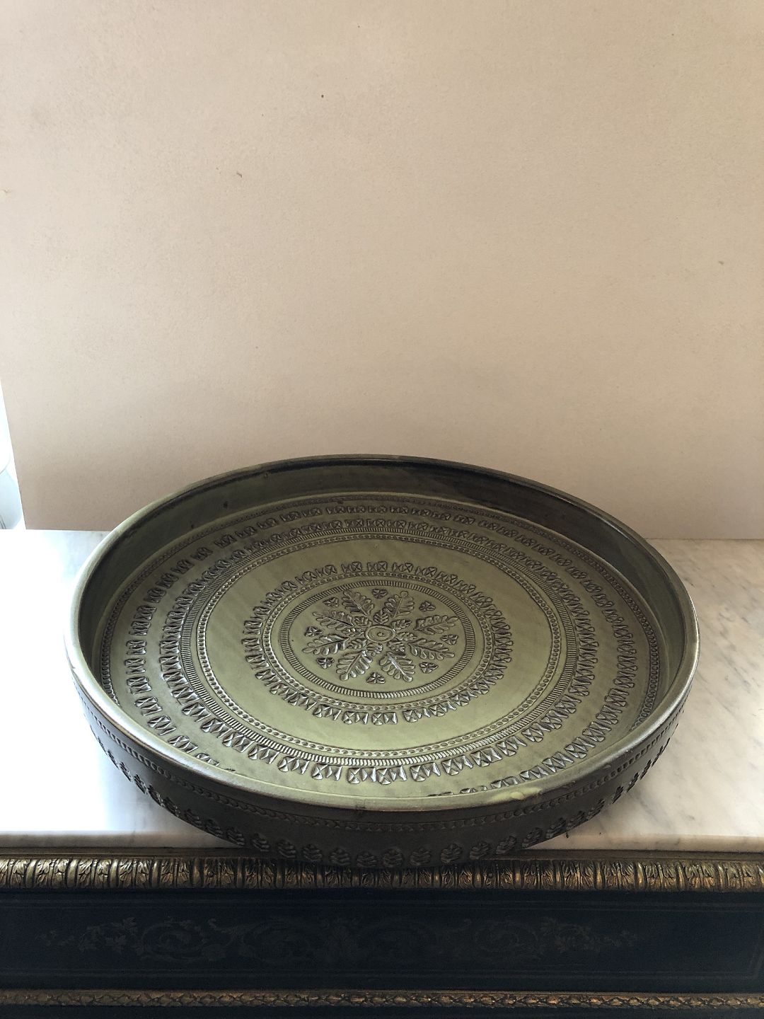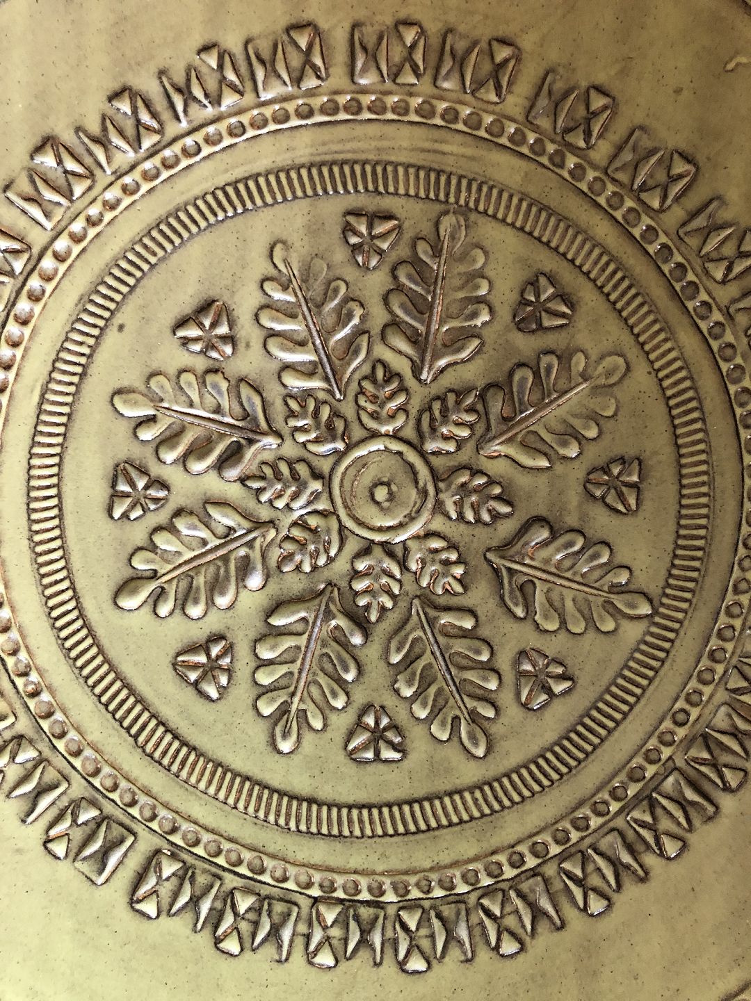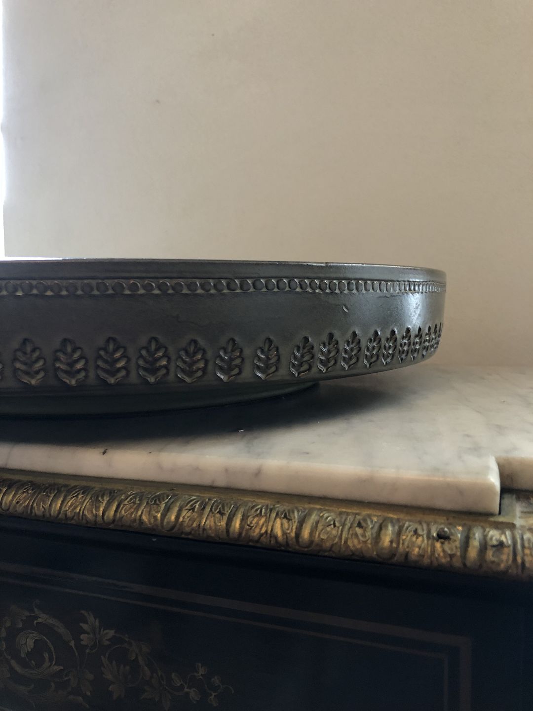 Stort fad i grøn glaseret stentøj udført hos Aldo Londi Italien.