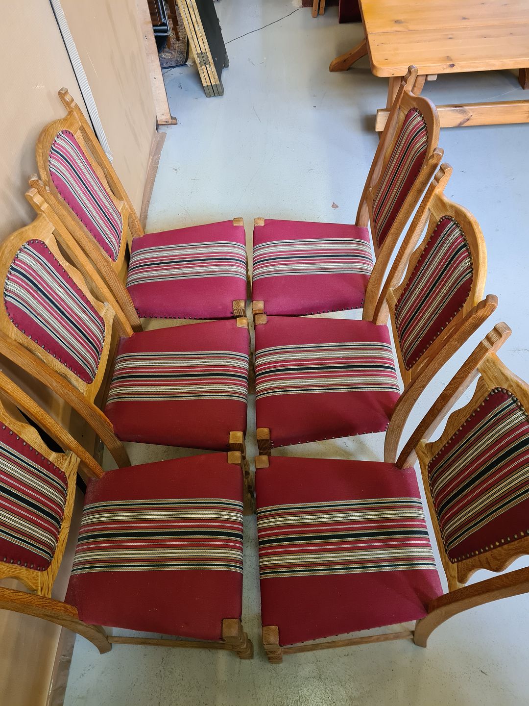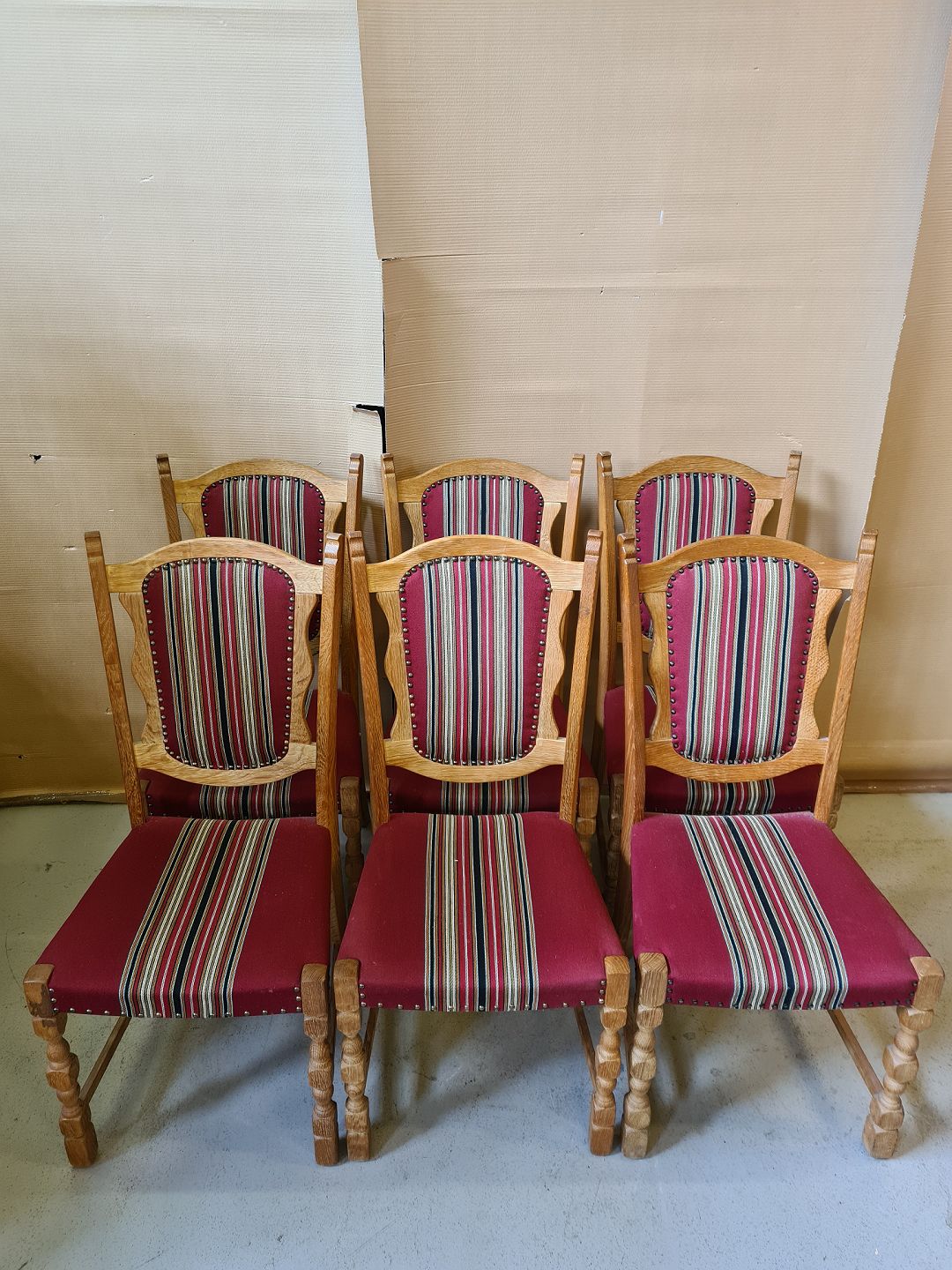 6 Stole i massivt egetræ, fra 1980erne.