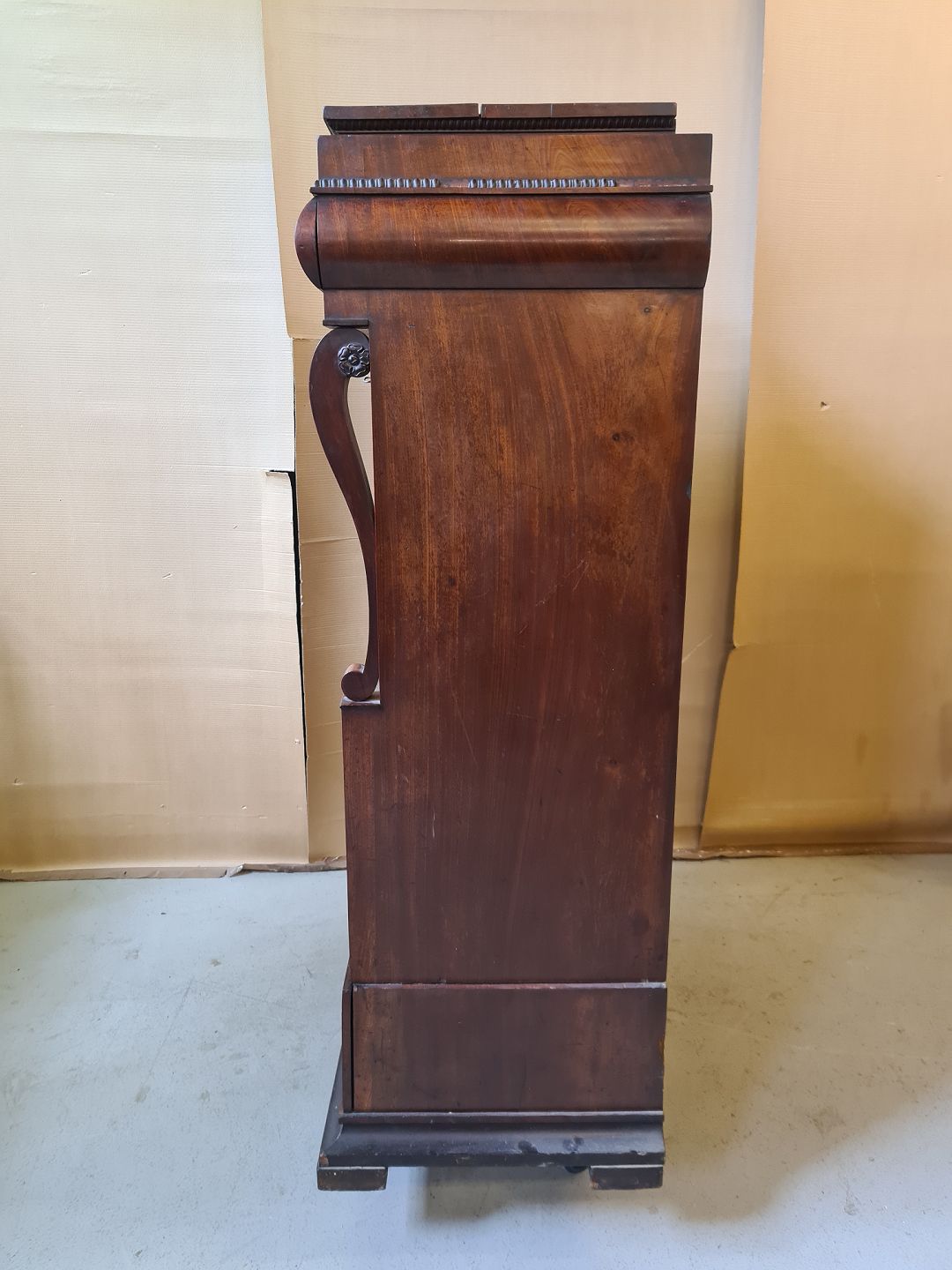 Sekretær i fineret mahogni, fra 1890erne. Den har brugsspor. H 152cm B 101cm D 50cm Emne nummer: 72539