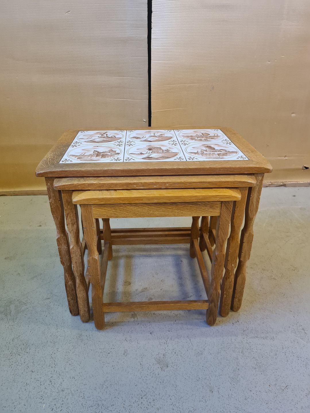 # indskudsborde i egetræ med kakler, fra 1980erne.