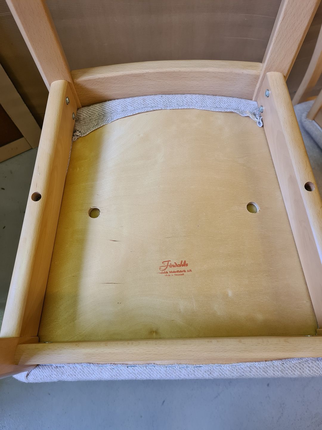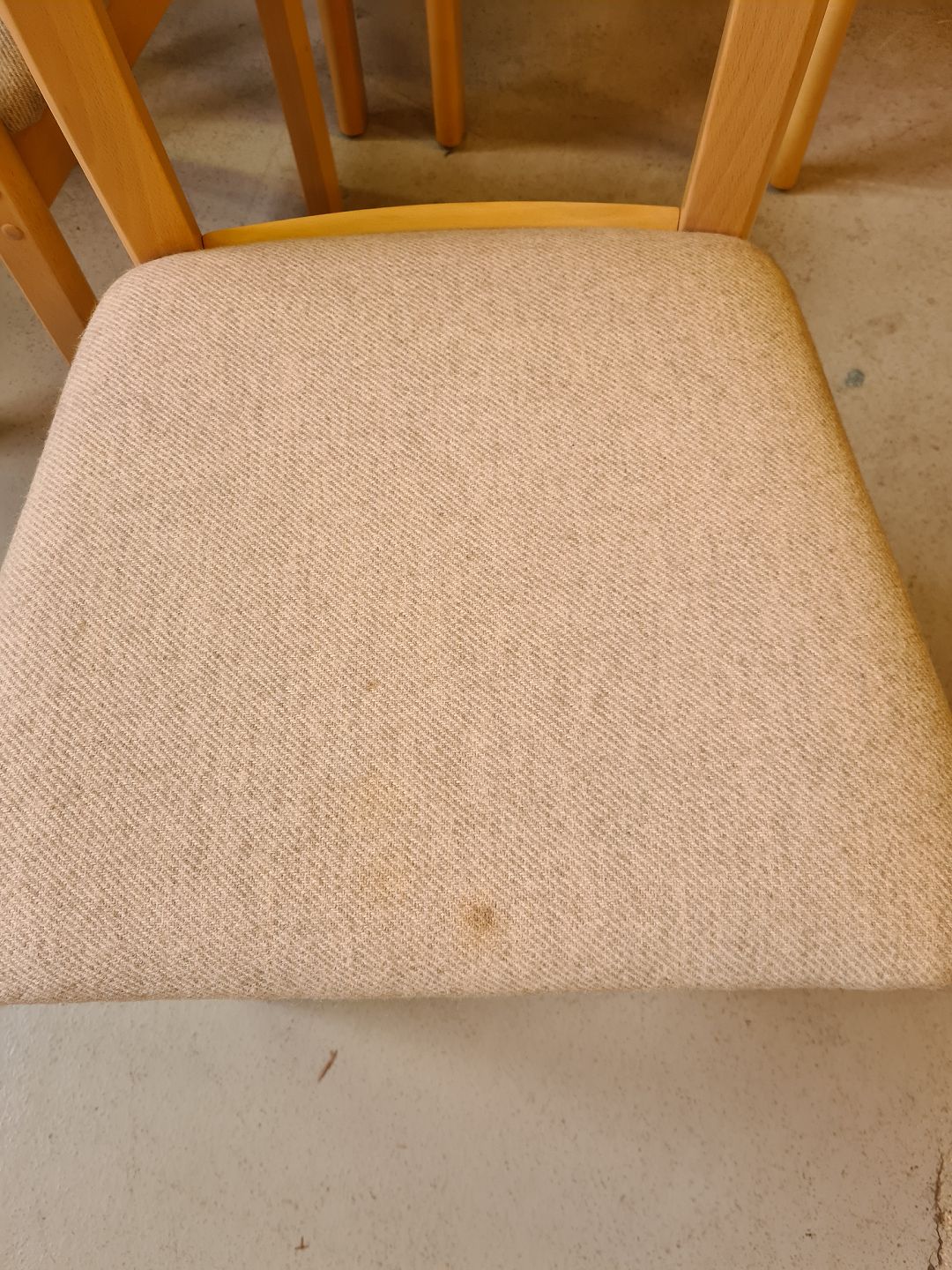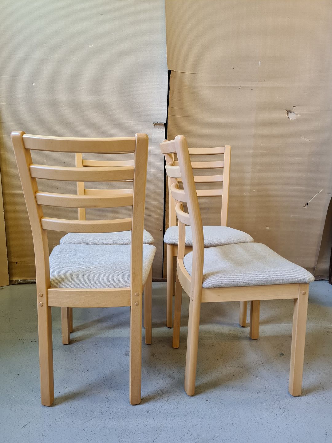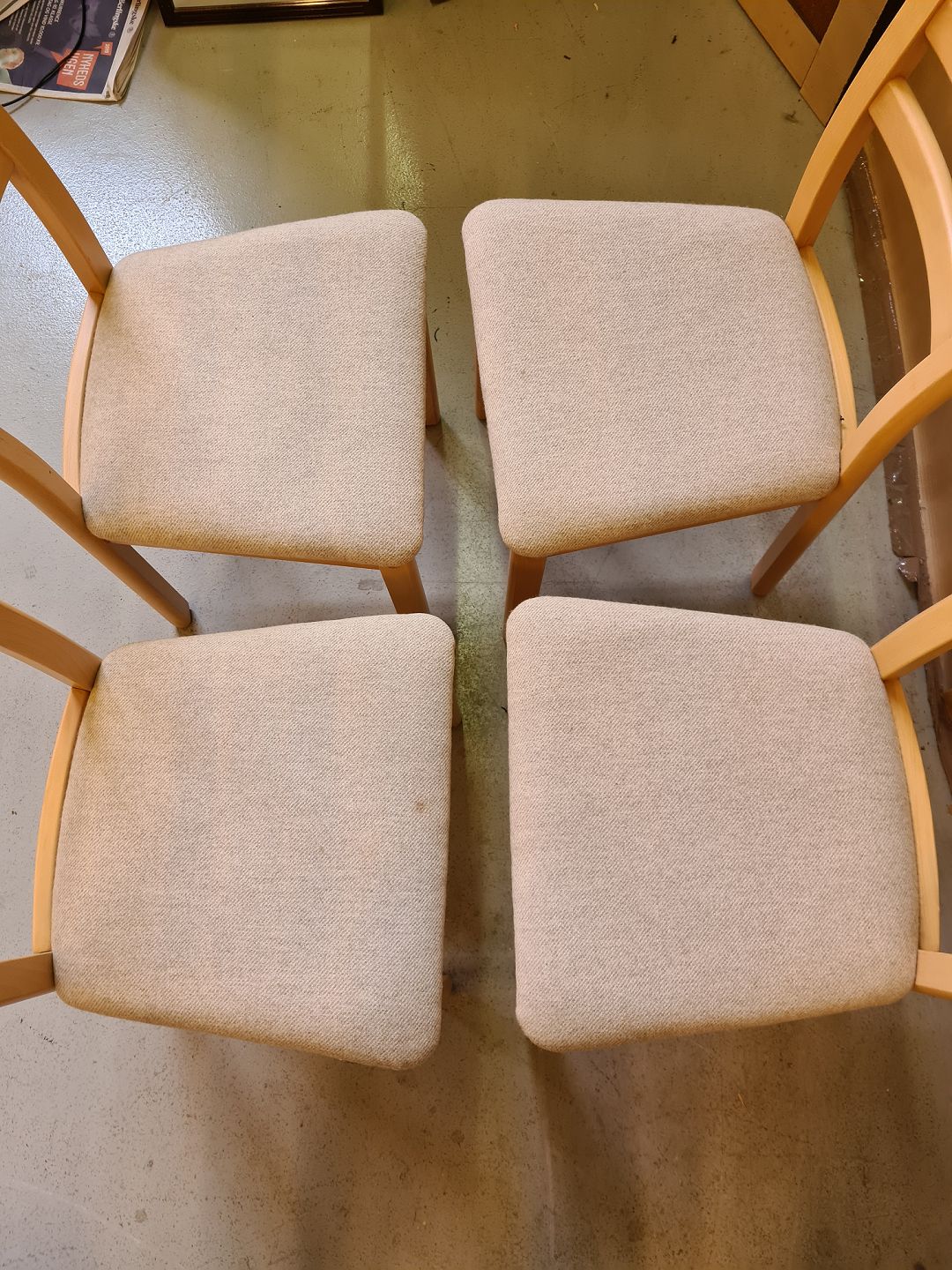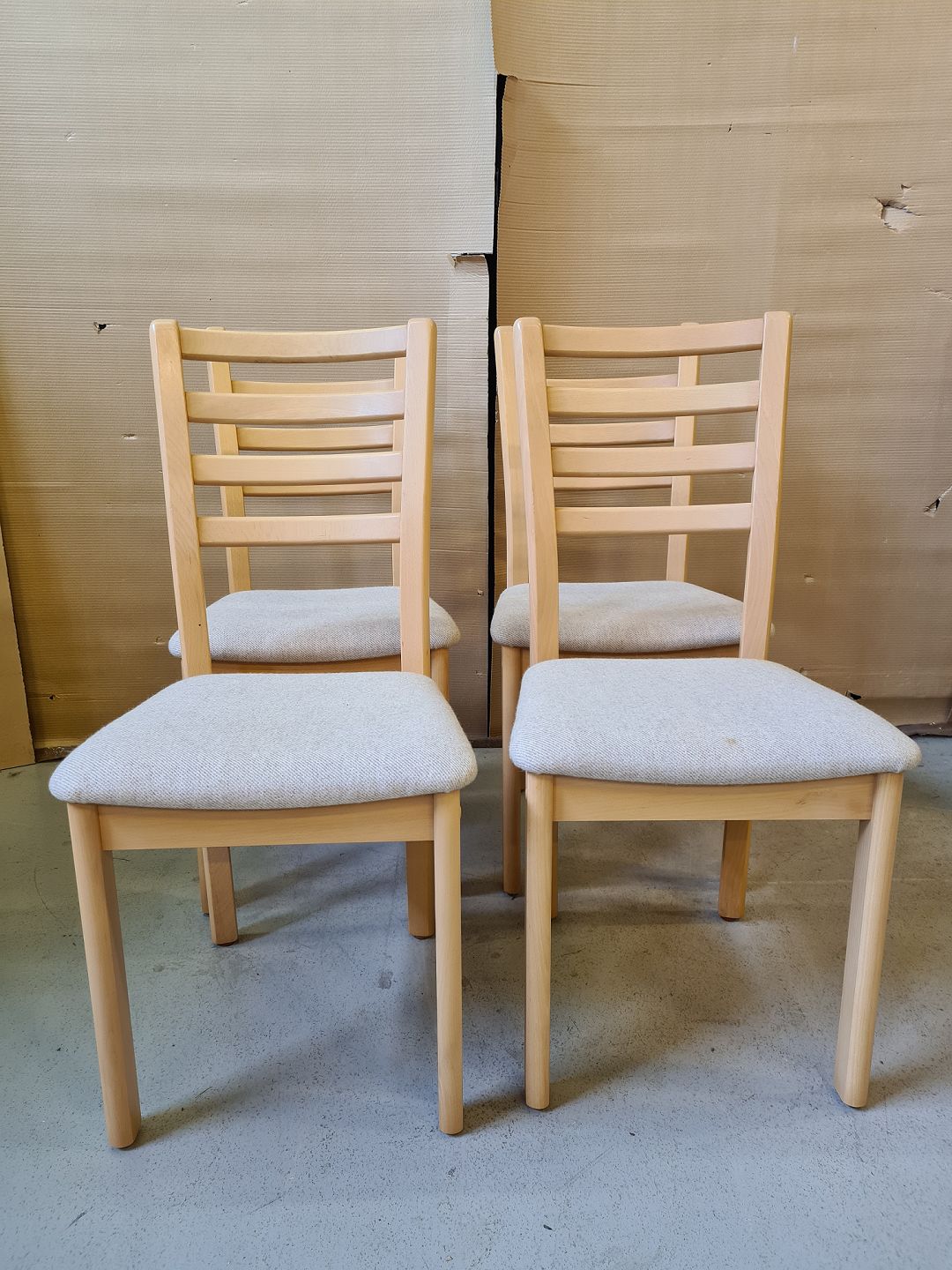 4 Stole i massivt bøgetræ, fra 2010erne. Den ene stol har en plet på sædet. Højde 96cm Sædehøjde 47cm Emne nummer: 72604
