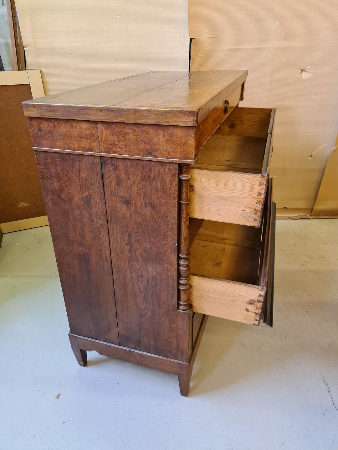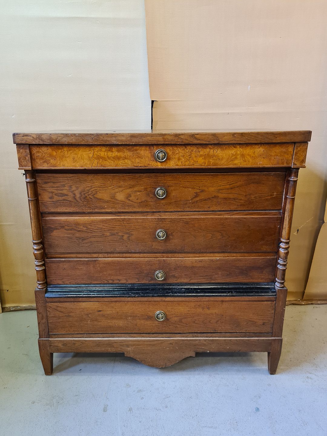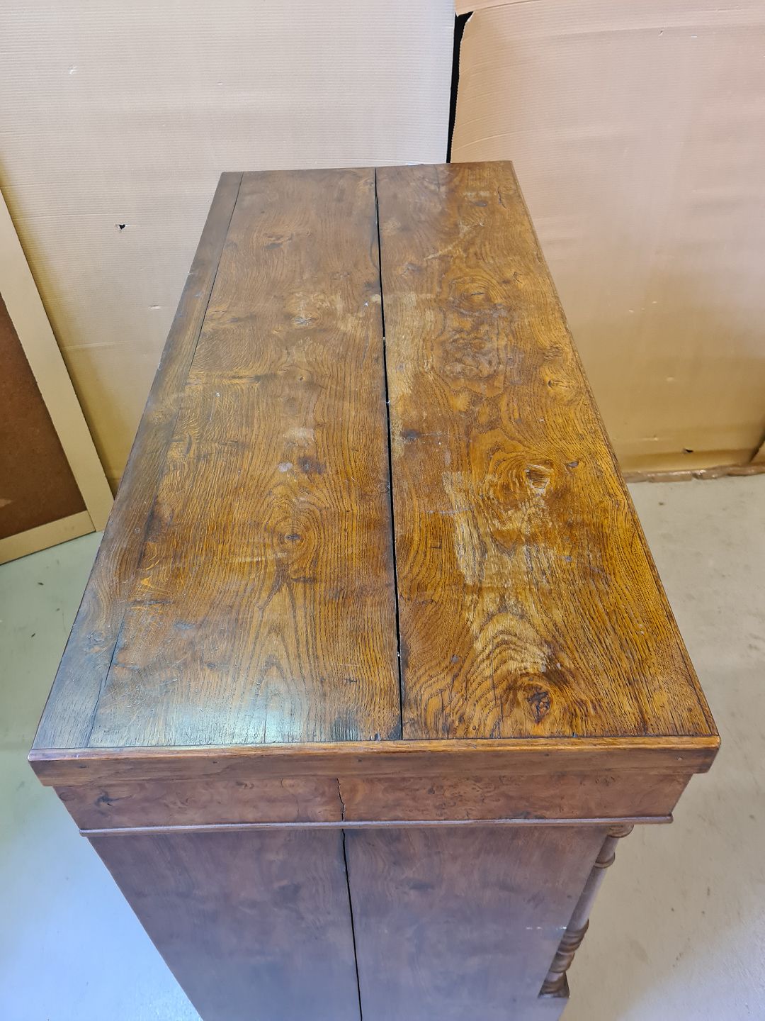 Dragkiste i massivt egetræ, fra 1880erne. Den har brugsspor. H 125cm B 126cm D 56cm Emne nummer: 72607