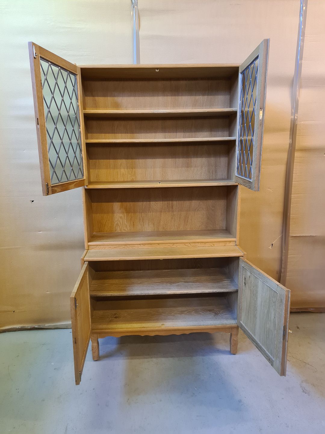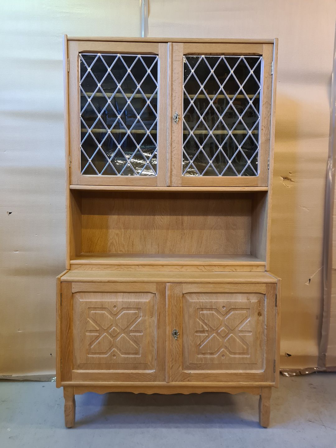 Reol i fineret egetræ, fra 1980erne.