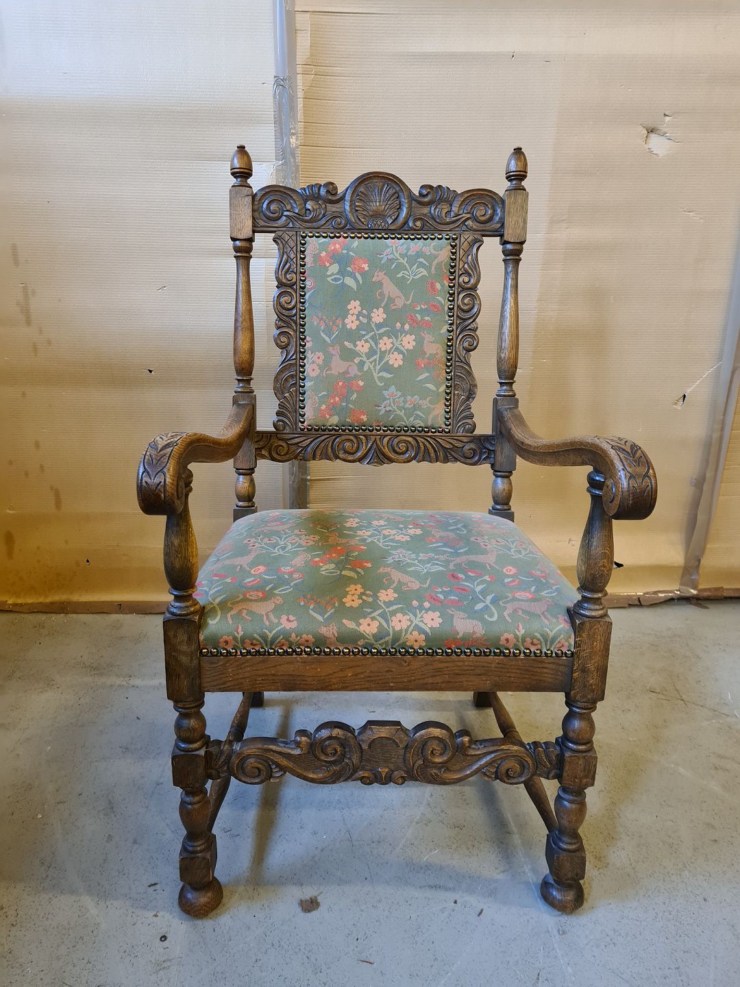 Armstol i bejset egetræ, fra 1930erne.