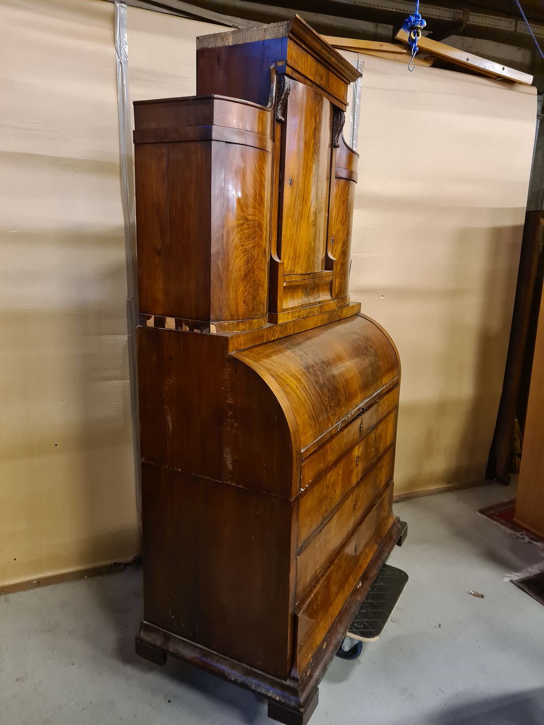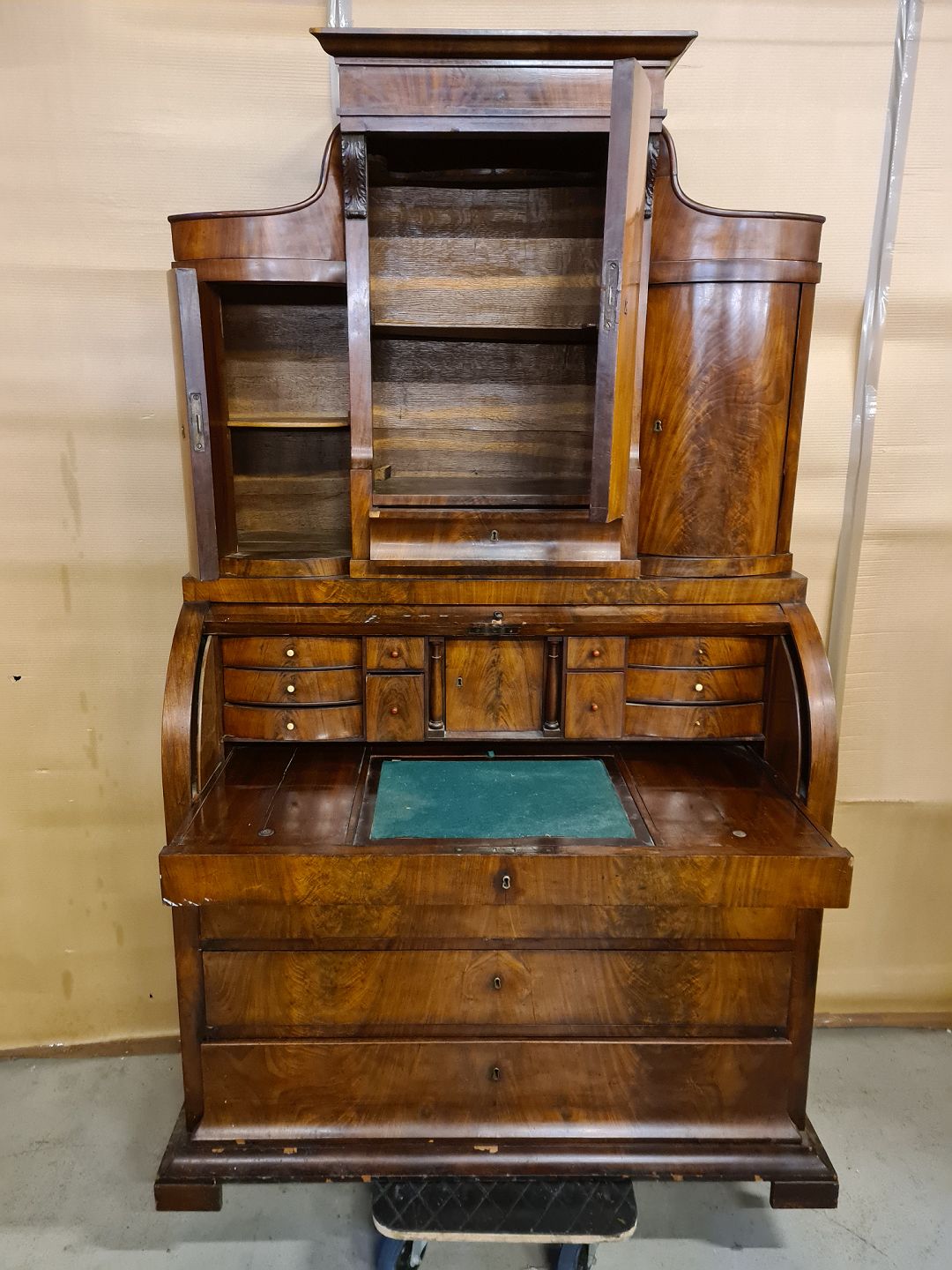 Chatol i fineret mahogni, fra 1890erne. Det her brugsspor og et par løse lister. H 212cm B 124cm D 56cm Emne nummer: 73131
