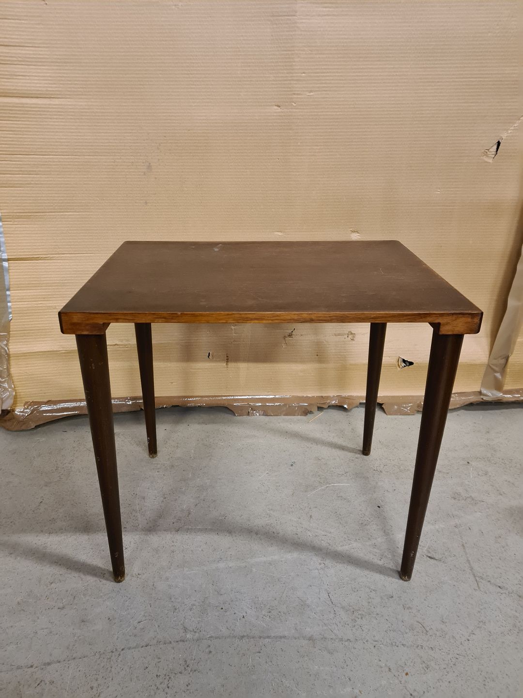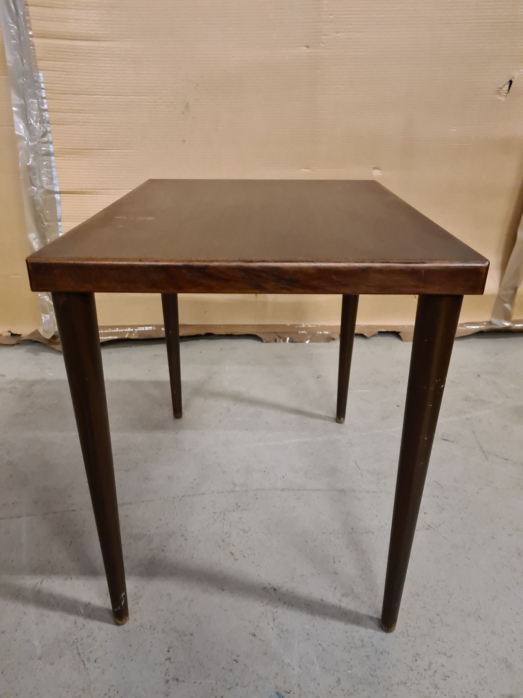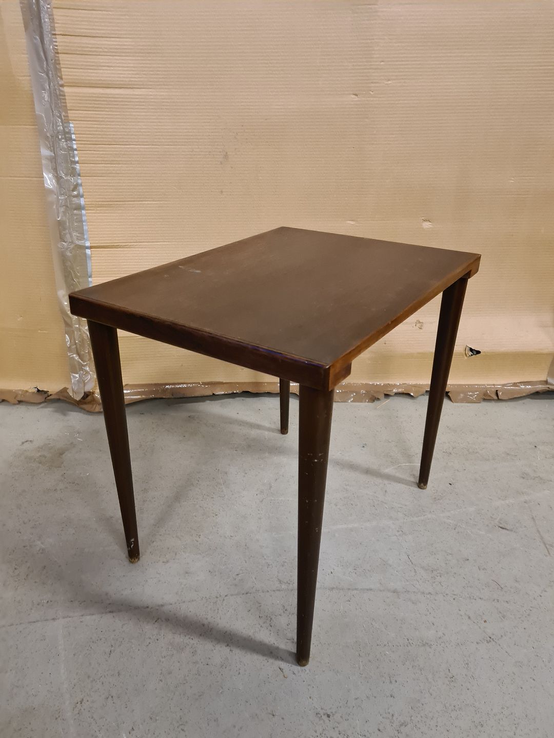 Lampebord med plade i fineret palisander og ben af bøgetræ, fra 1960erne. Bordpladen har brugsspor. H 43cm B 36cm L 48cm Emne nummer: 73259
