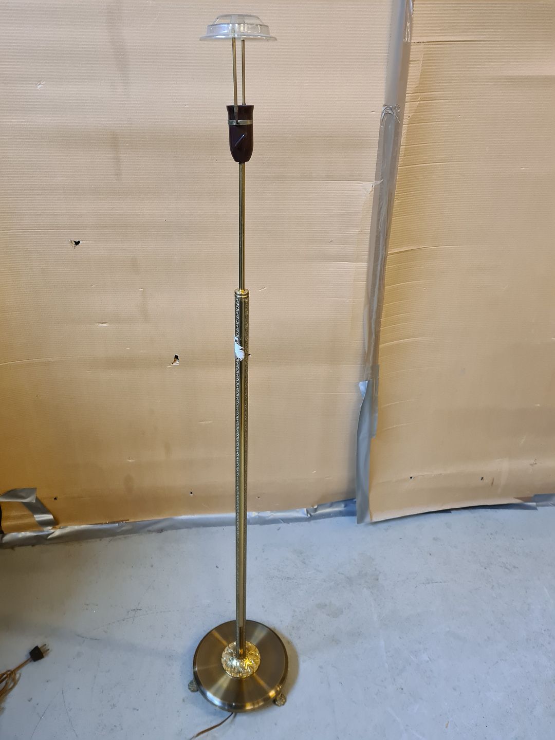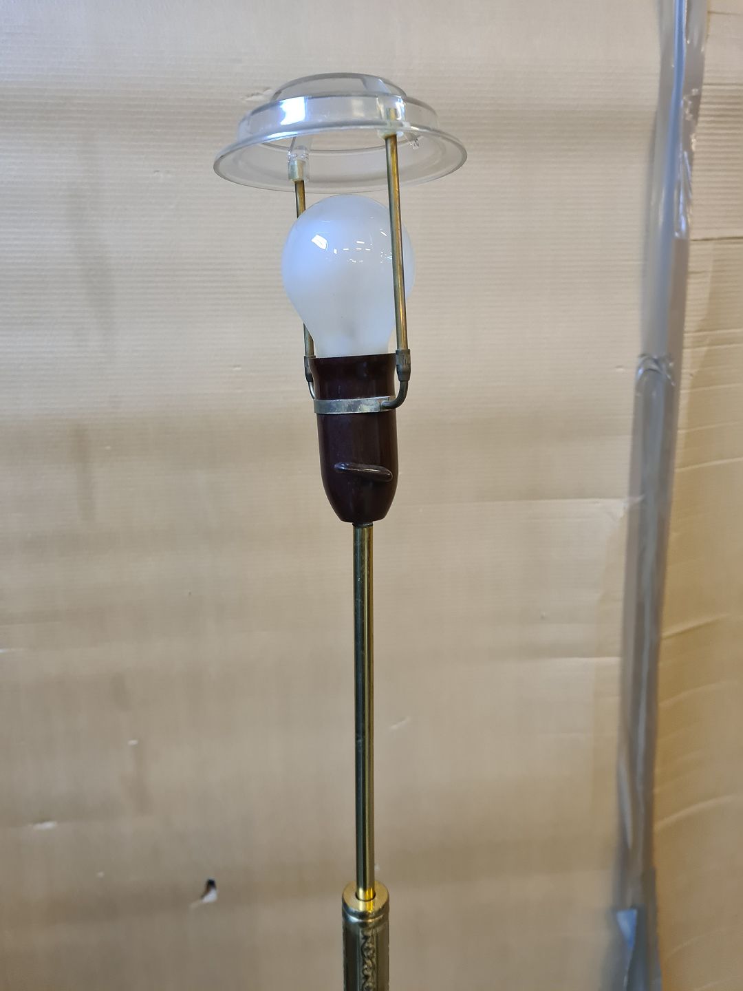 Standerlampe i messing, fra 1960erne. Den har brugsspor. Højde 150cm Diameter 24cm Emne nummer: 73590