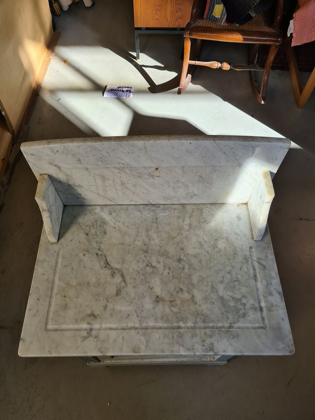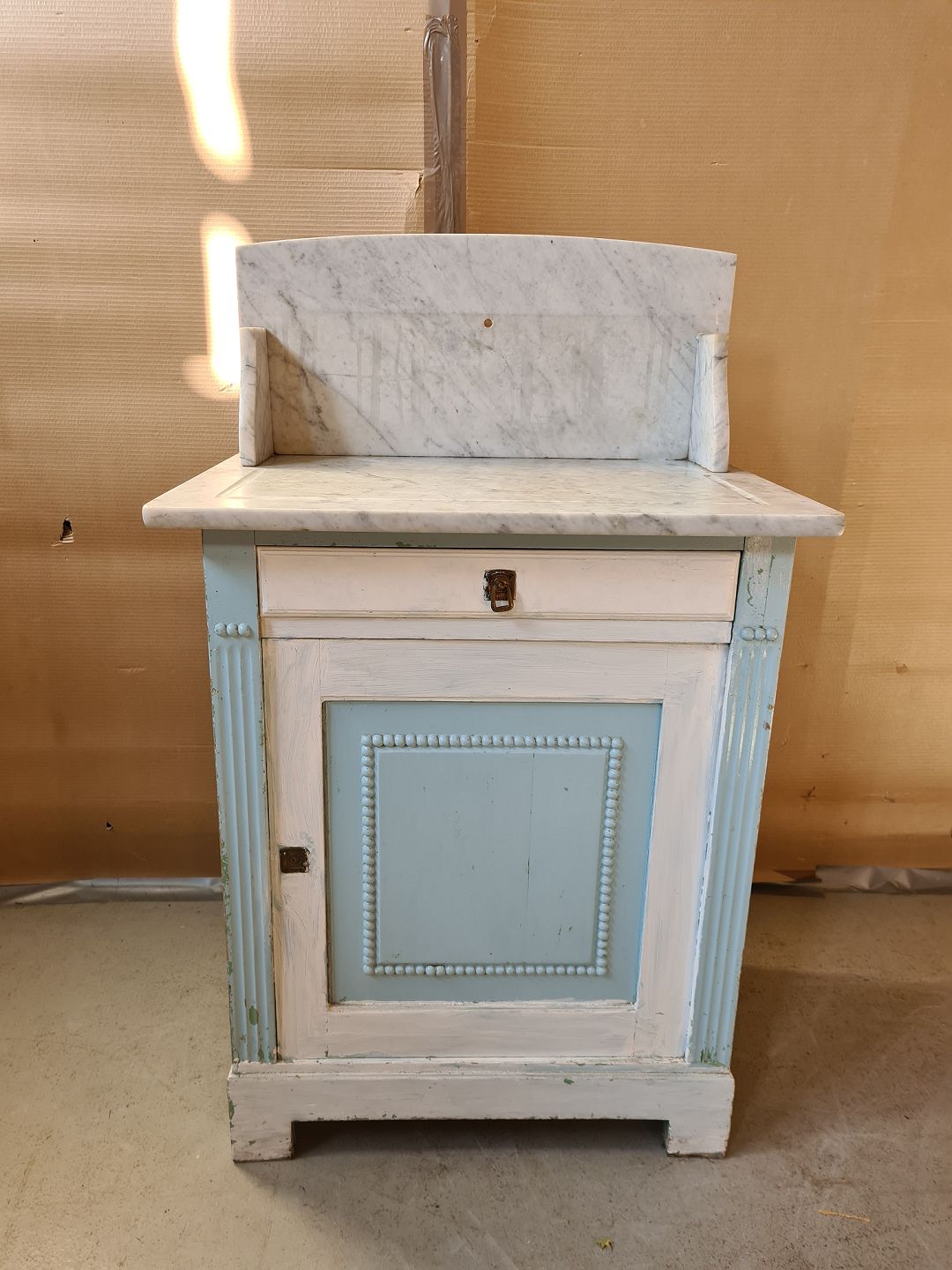 Malet servante med marmor opsats, fra 1910erne. Den har brugsspor. H 103cm B 63cm D 42cm Emne nummer: 73602