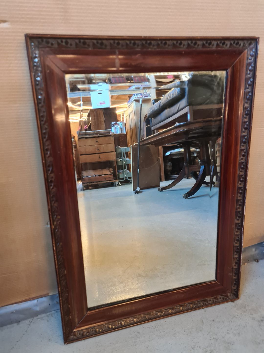 Spejl i ramme af mahogni - Kr. 450,-