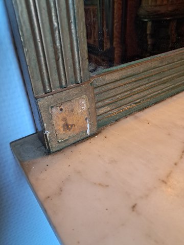 Guldmalet spejl med marmor hylde, fra 1920erne.