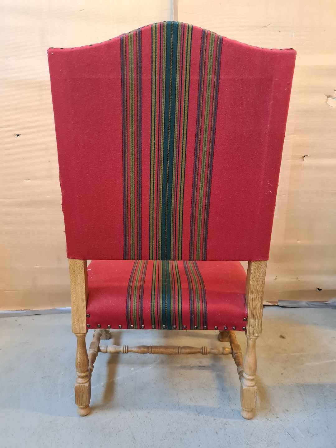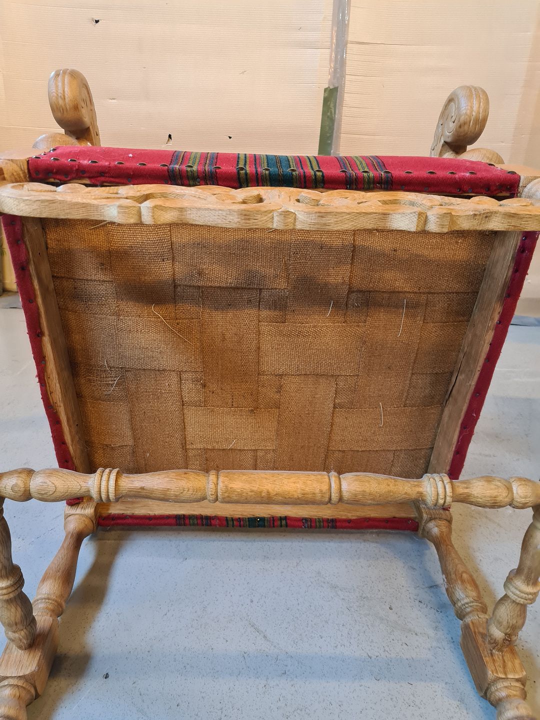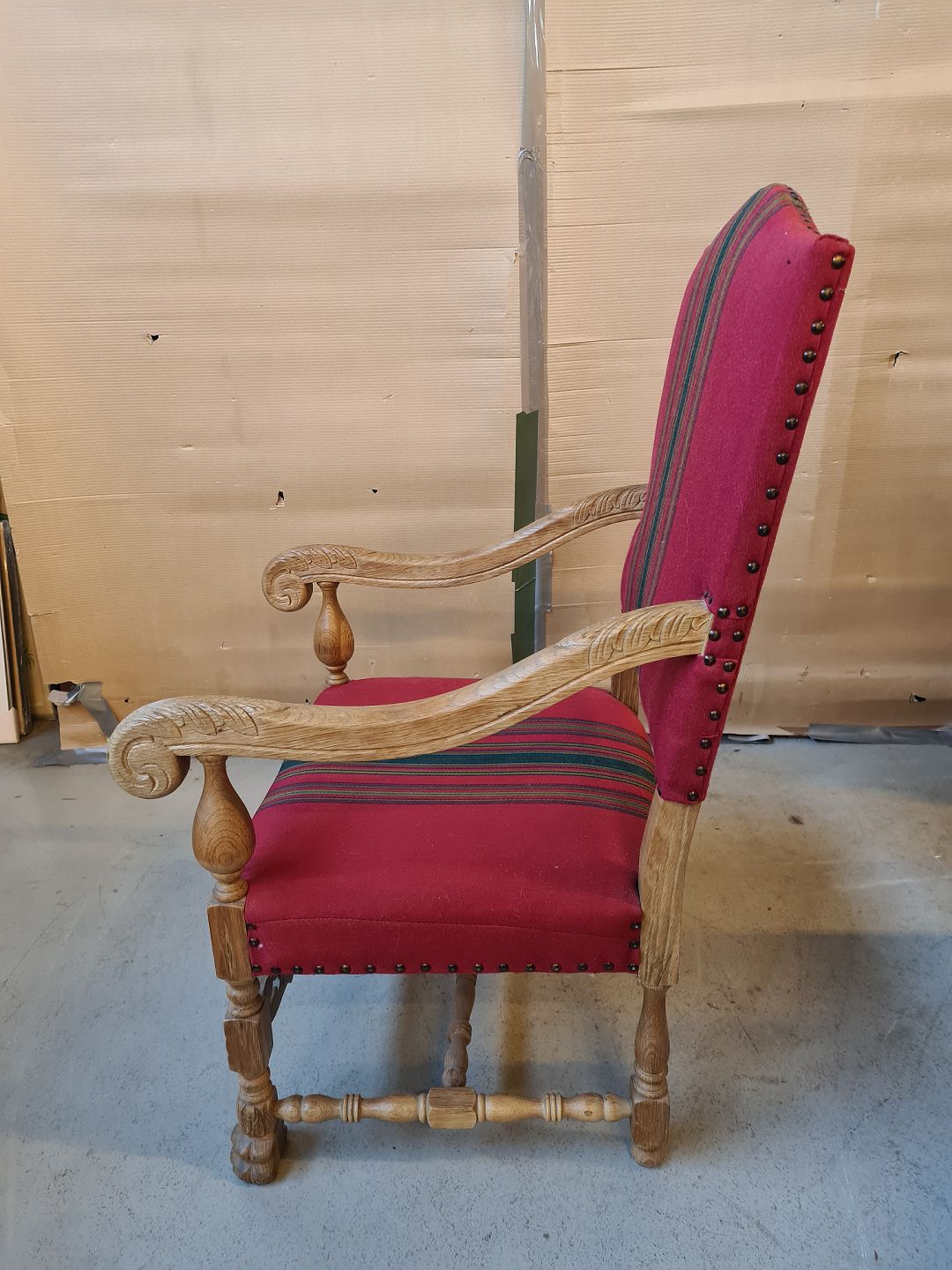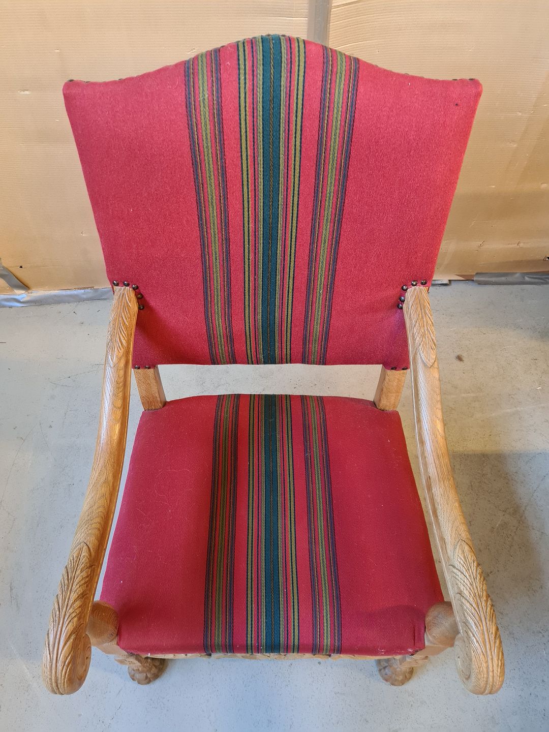 Armstol i massivt egetræ, fra 1980erne. Den har brugsspor. Højde 114cm Sædehøjde 43cm Emne nummer: 74030