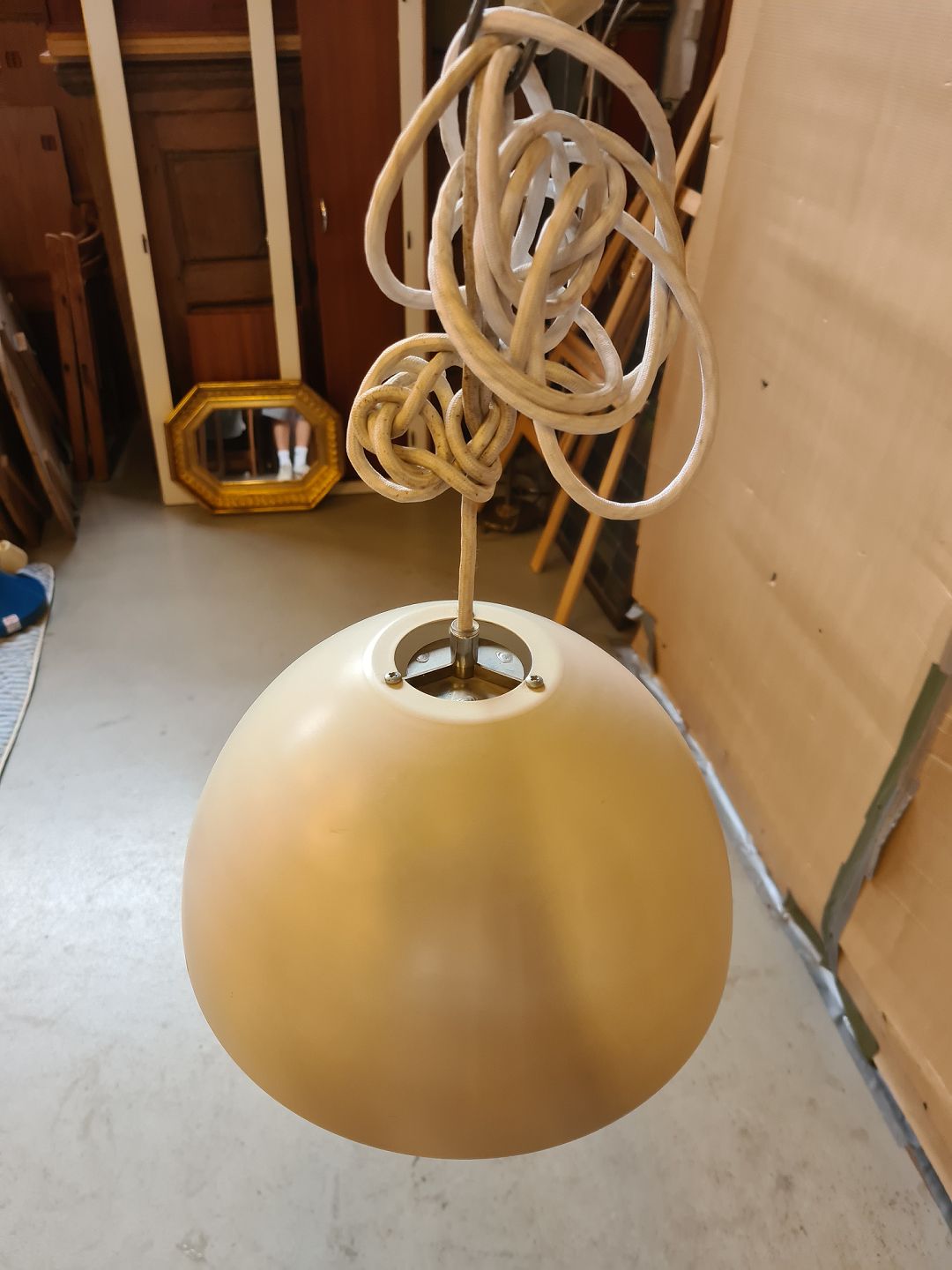 Loftlampe i malet metal, fra 1980erne.