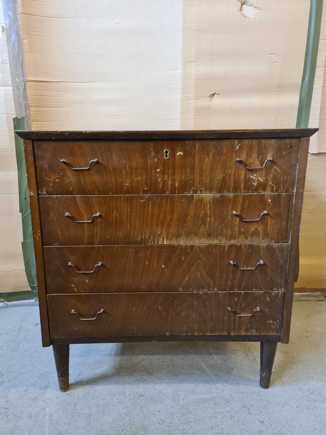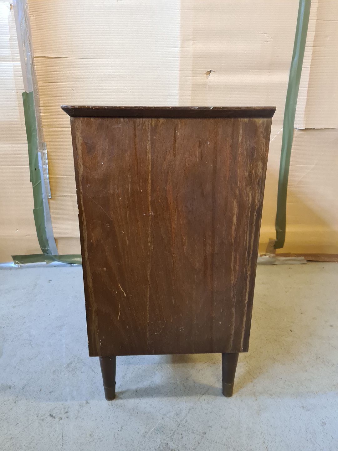 Kommode i fineret og bejdset i bøgetræ, fra 1950erne.