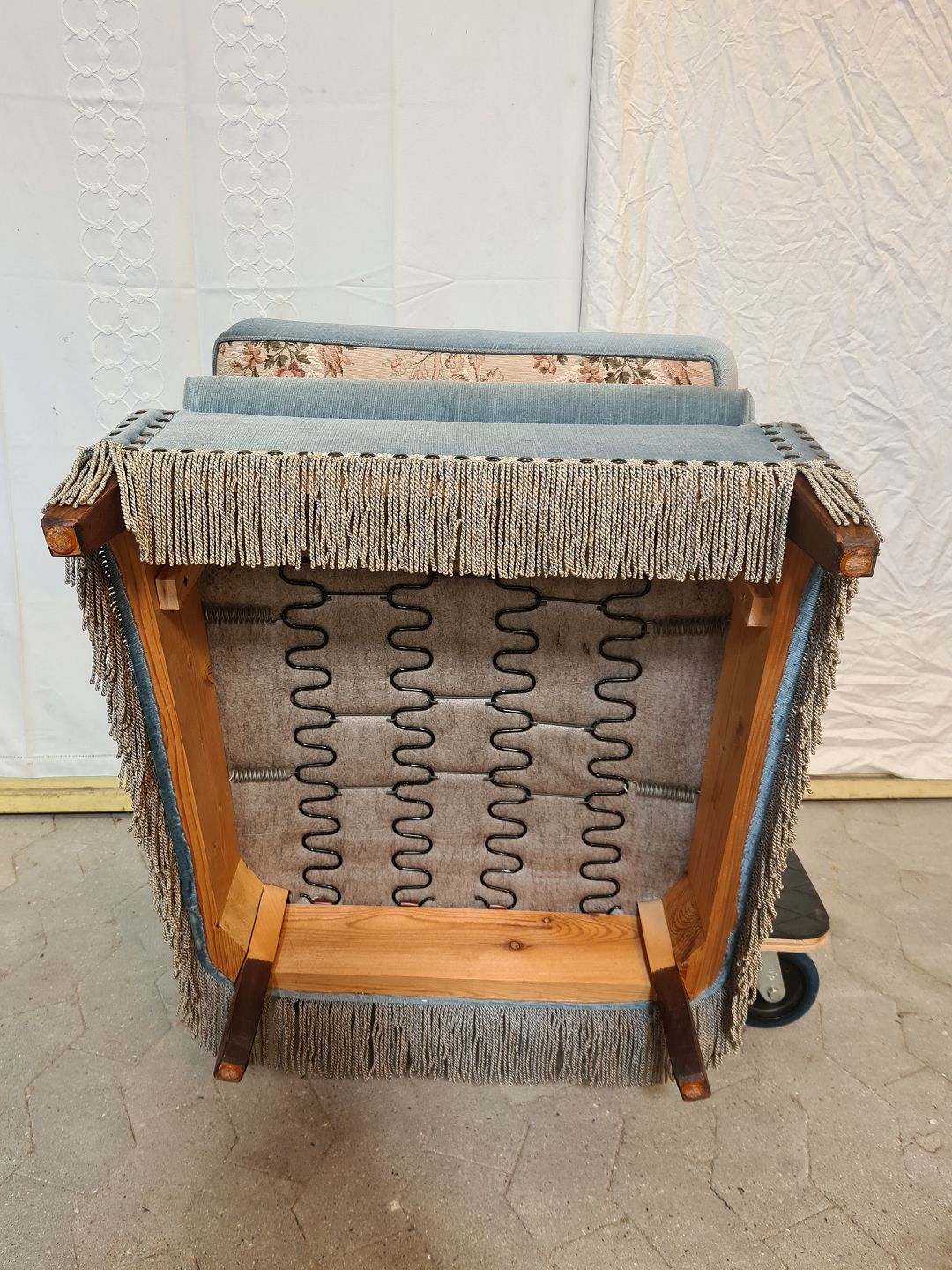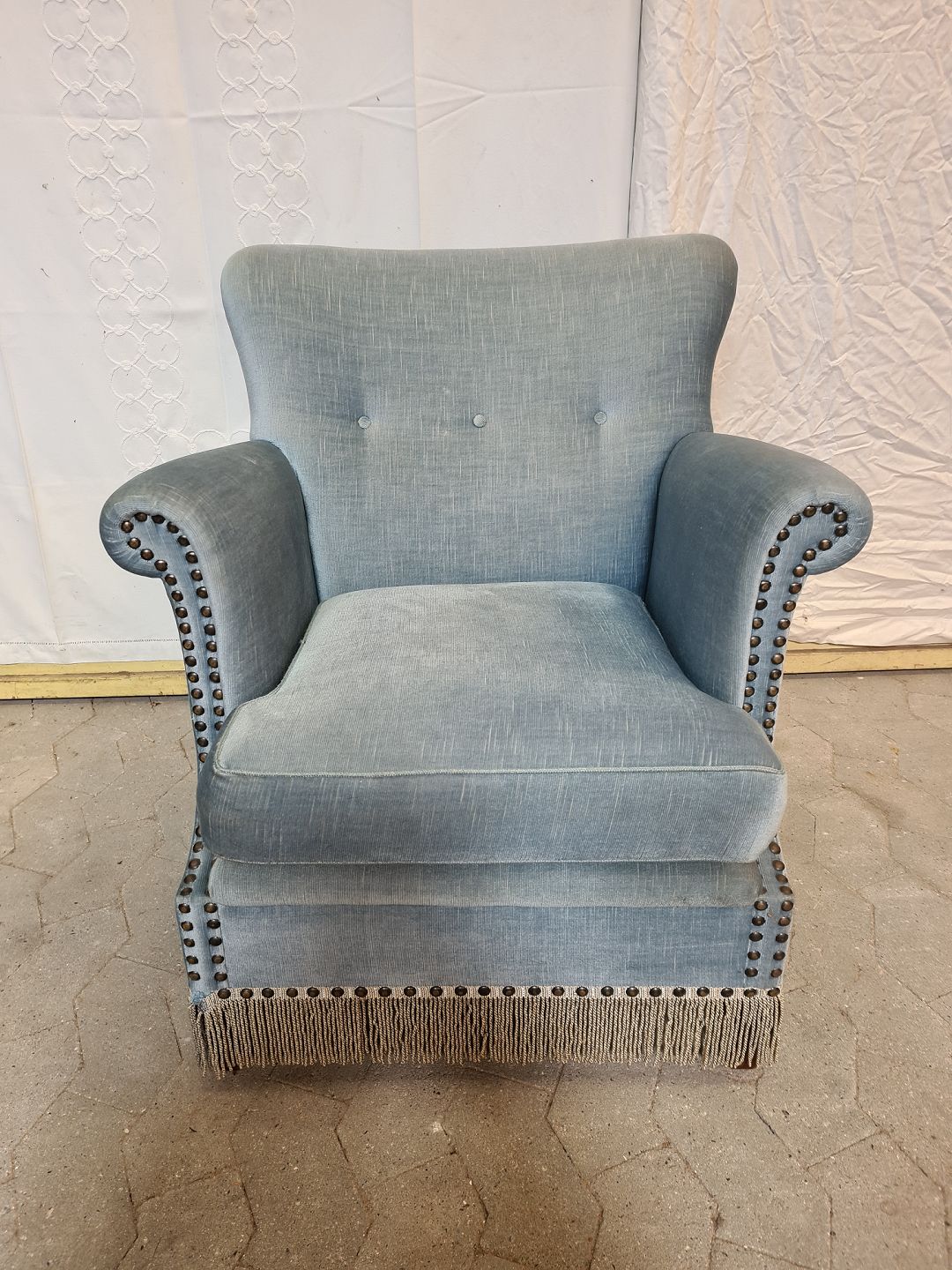 Lænestol i velour med vendbar hynde fra 1980erne. Den har brugsspor/patina. Ryghøjde 78cm Sædehøjde 41cm Emne nummer: 90577