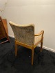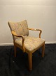 Armstol i eg med stof betrukket sæde og ryg. Fremstår pæn, velholdt og udmærket stabil. HxBxD 80x59x62 cm. Siddehøjde 47 cm. Emne nummer: 80313