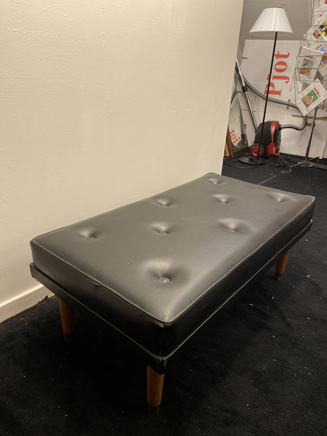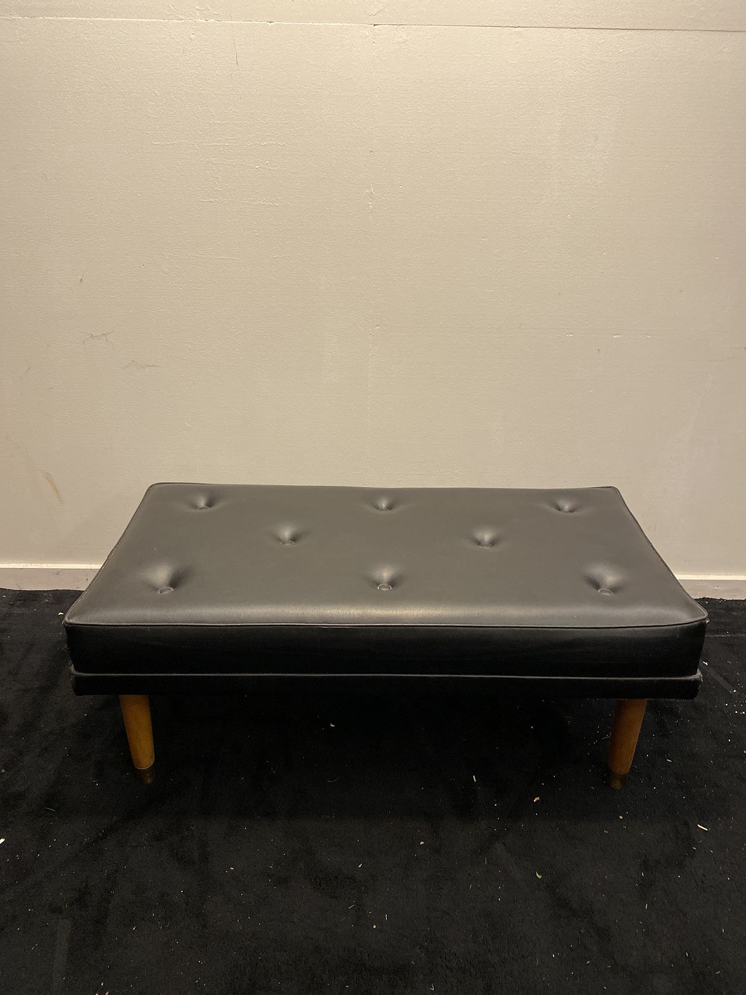 Stor fodskammel fra 1960´erne med nappabetræk. Fremstår pæn og velholdt uden nævneværdige brugsspor.