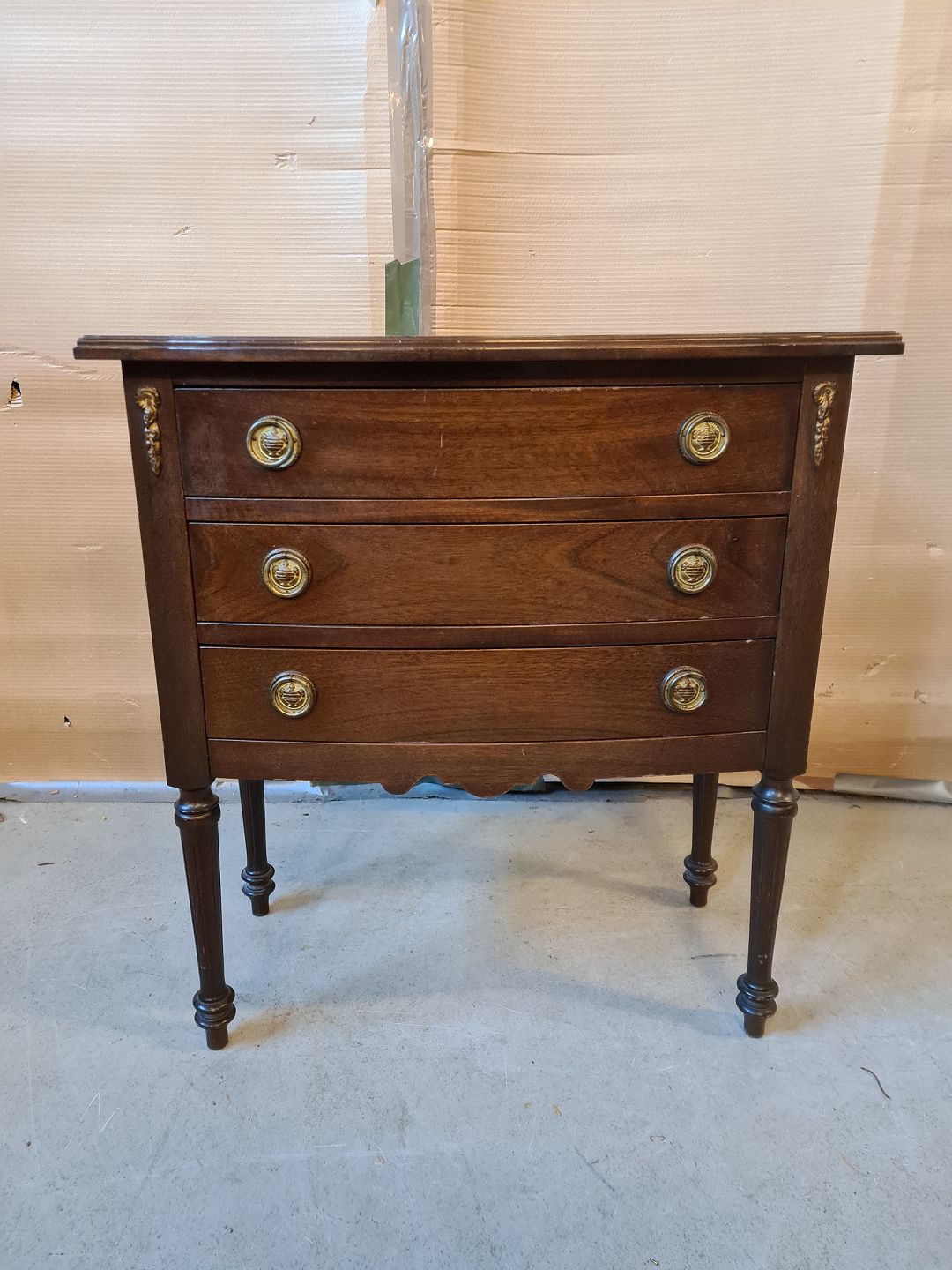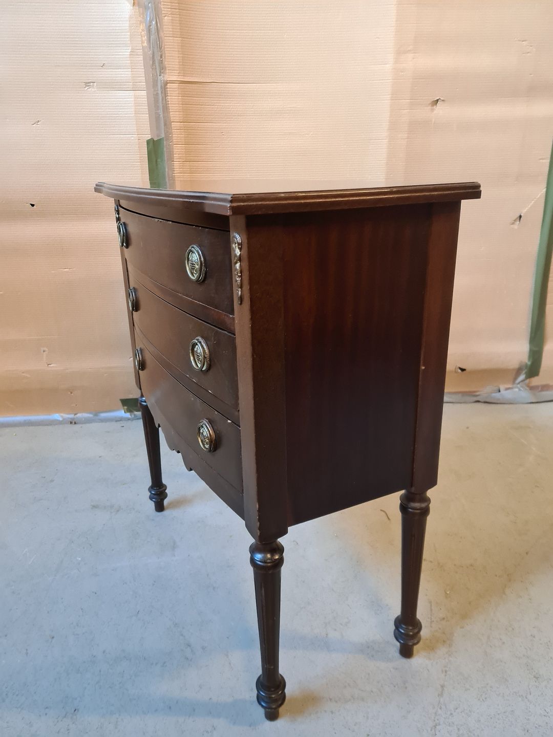 Kommode i fineret mahogni, fra 1980erne. Den har brugsspor. Højde 70cm Bredde 65cm Dybde 32cm Emne nummer: 74697