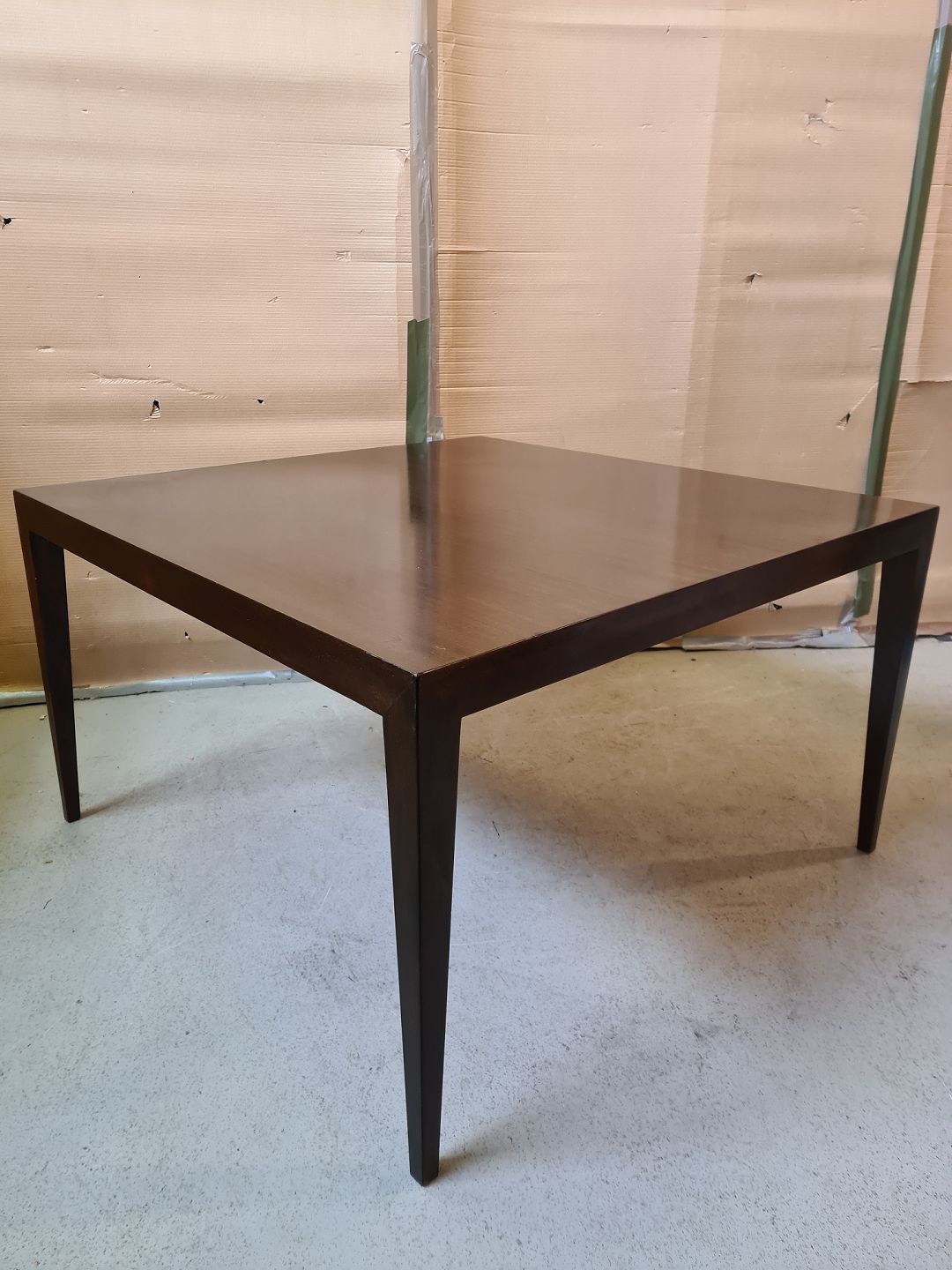 Haslev sofabord i fineret mahogni, fra 1970erne. Det har brugsspor. Højde 56cm Bredde 95cm Længde 95cm Emne nummer: 74939