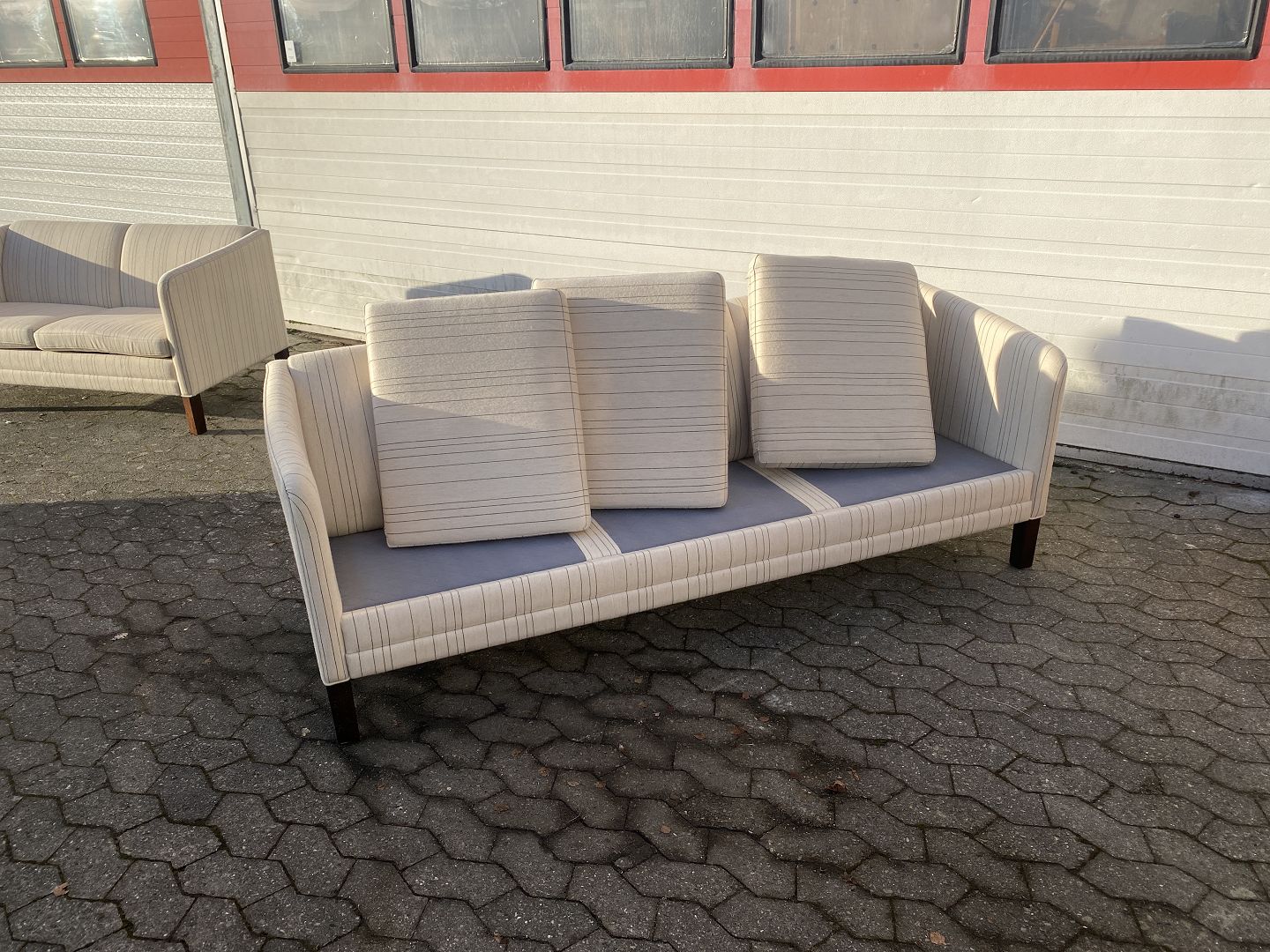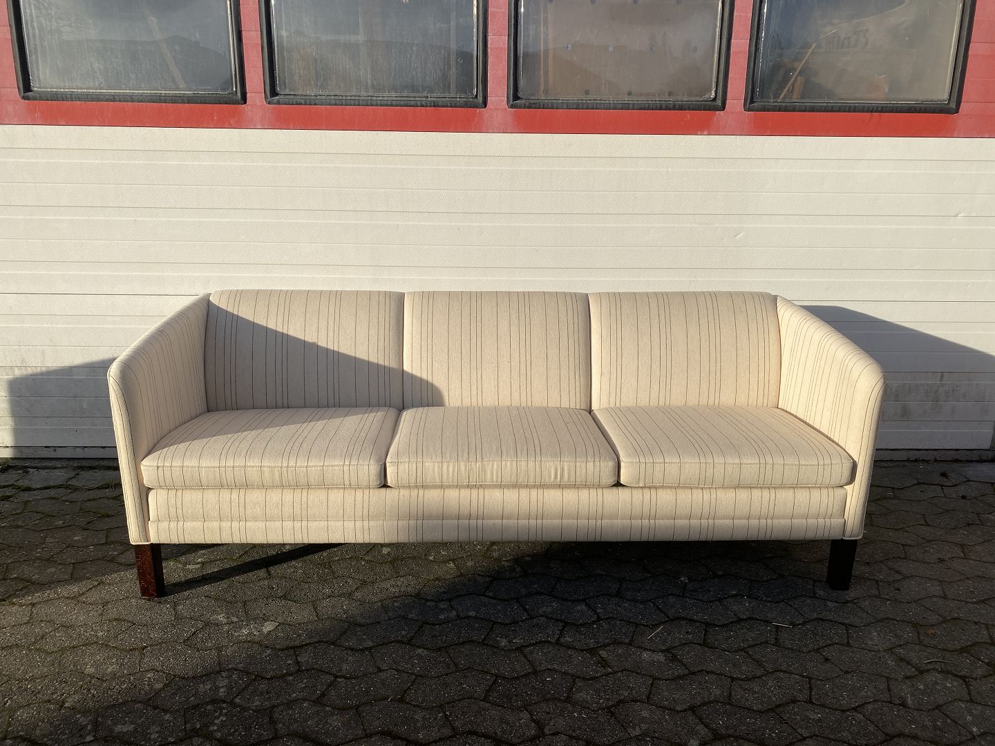 3 Personers sofa med uldbetræk, fra 1990erne. Den har små brugsspor. Ryghøjde 75cm Længde 200cm Dybde 73cm Sædehøjde 45cm Se sofa nr. 74961 Emne nummer: 74960
