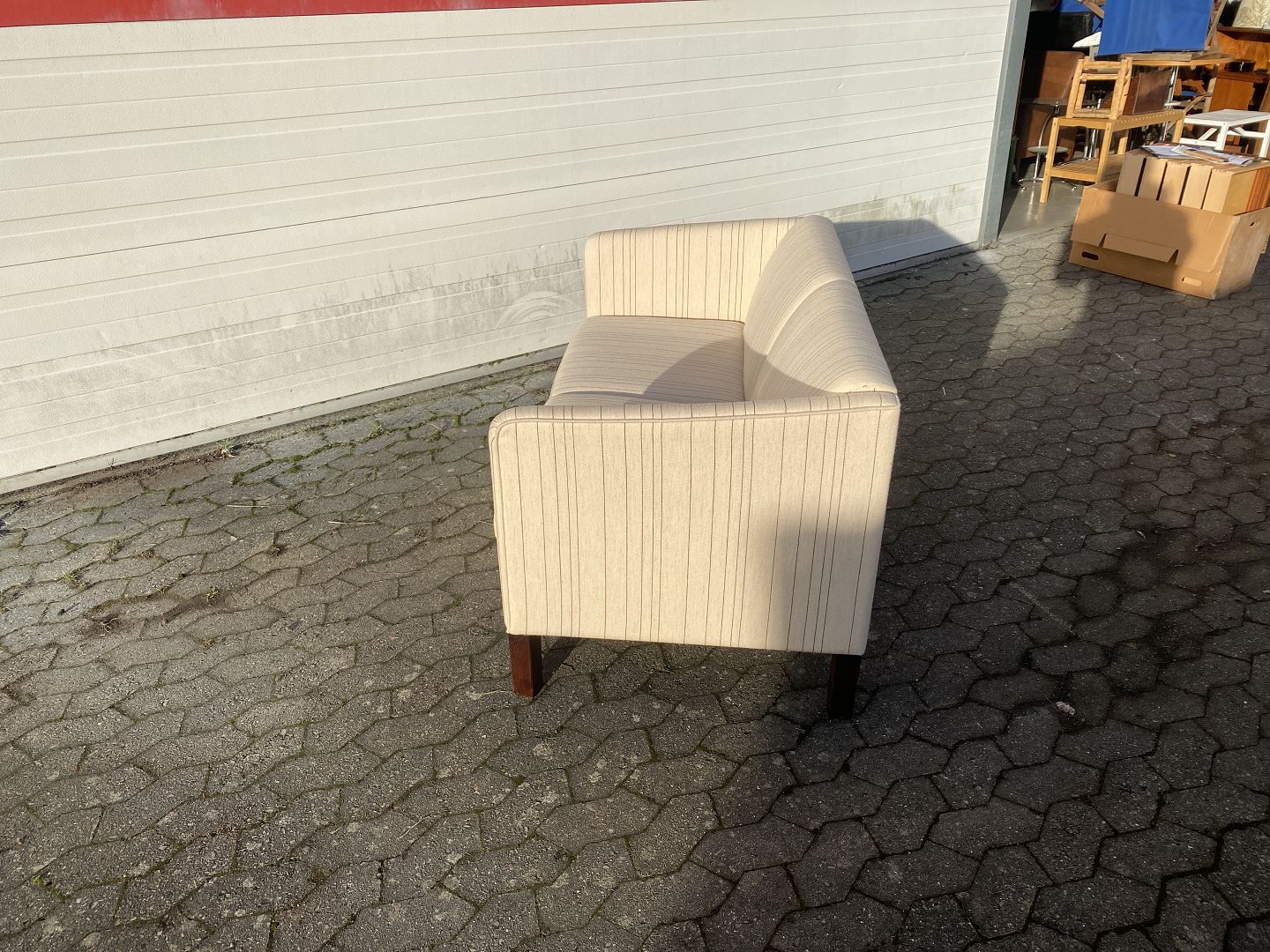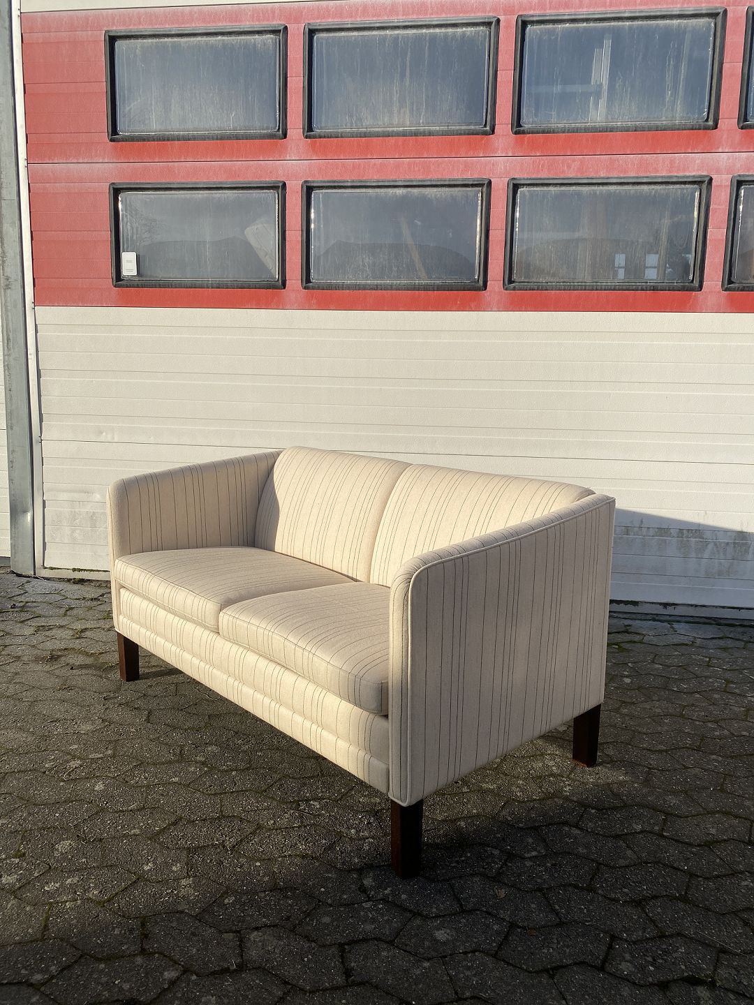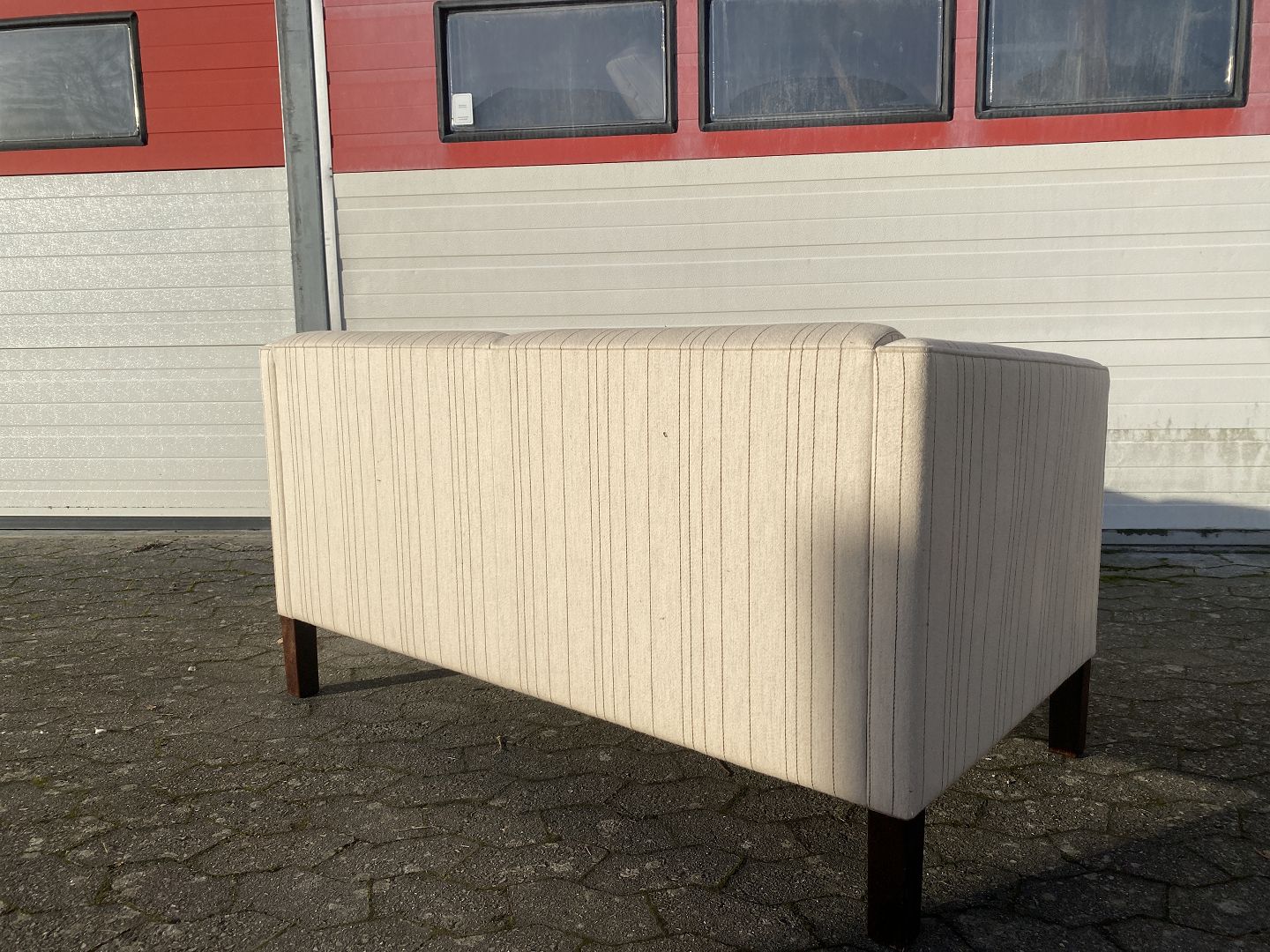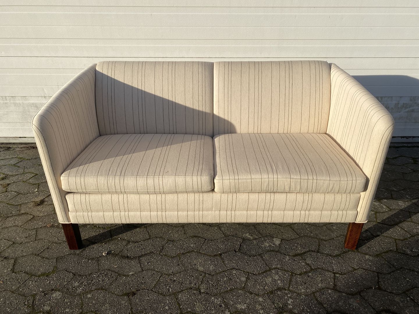 2 Personers sofa med uldbetræk, fra 1990erne. Den har små brugsspor. Ryghøjde 75cm Længde 140cm Dybde 73cm Sædehøjde 45cm Se sofa nr. 74960 Emne nummer: 74961