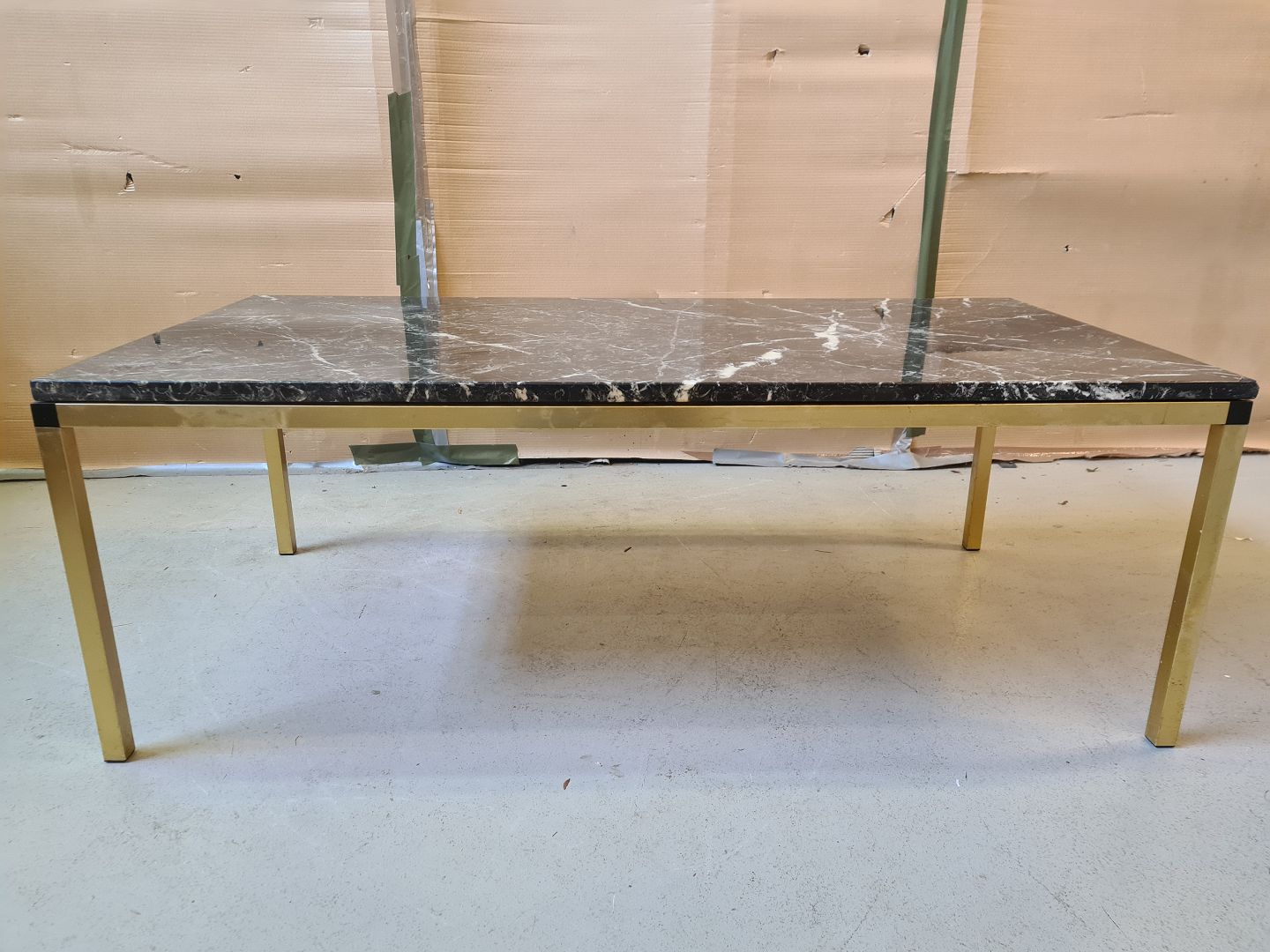 Sofabord i metal med marmorplade, fra 1980erne. Det har brugsspor og en defekt på hjørnet. Højde 45cm Bredde 65cm Længde 127cm Emne nummer: 76306