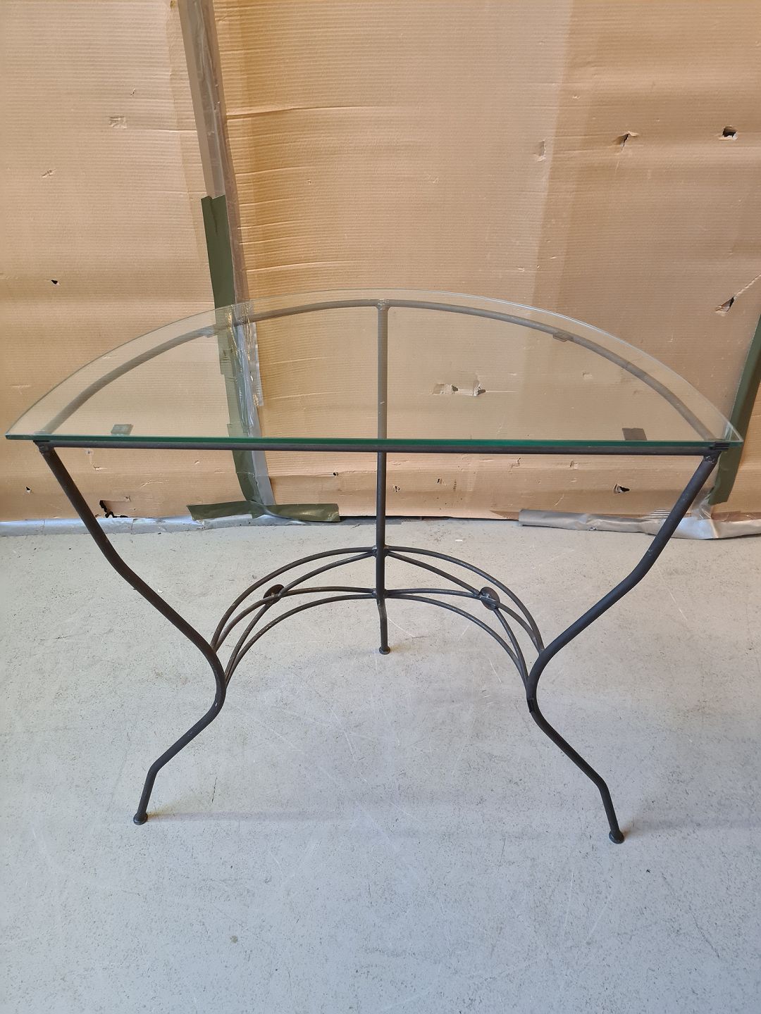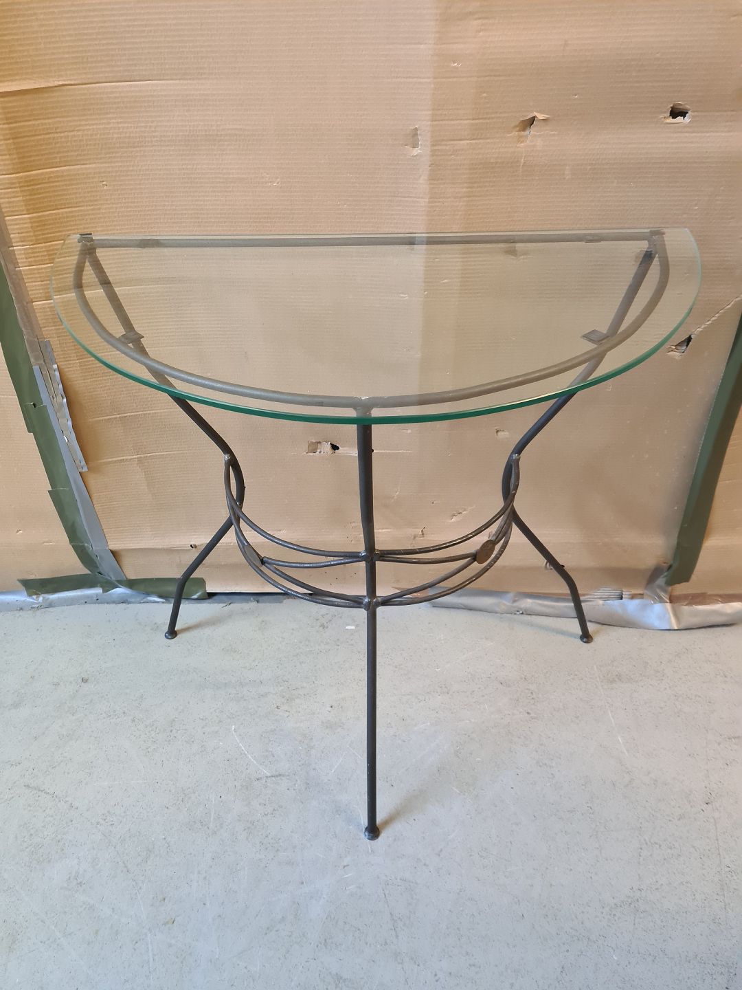 Entrebord i metal med glasplade, fra 1990erne.