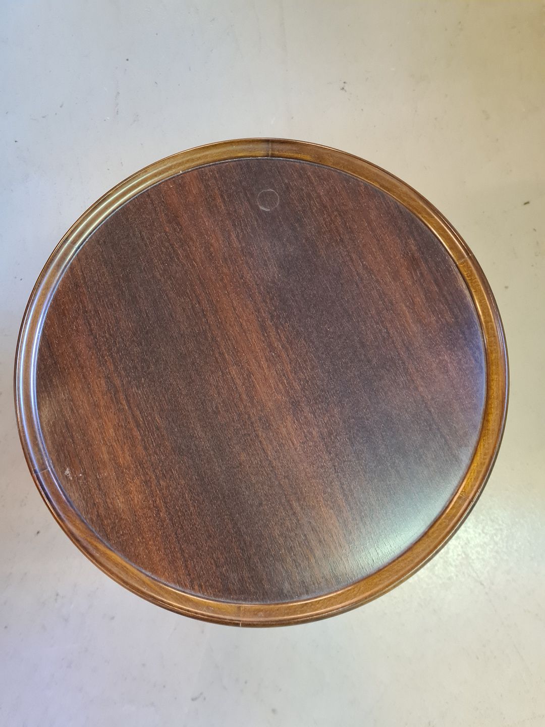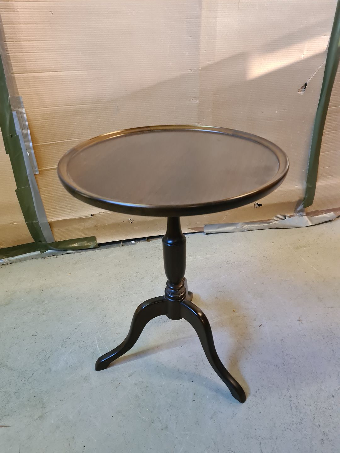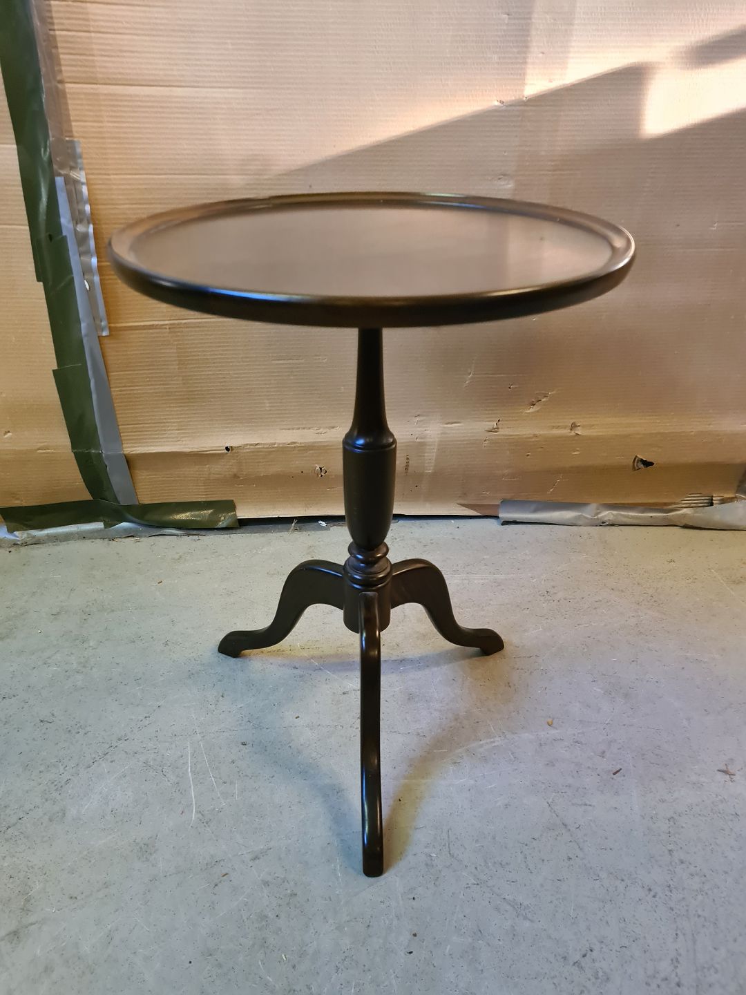 Lampebord i massivt bøgetræ og fineret mahogni, fra 1980erne. Det har små brugsspor. Højde 57cm Diameter 43cm Emne nummer: 75166
