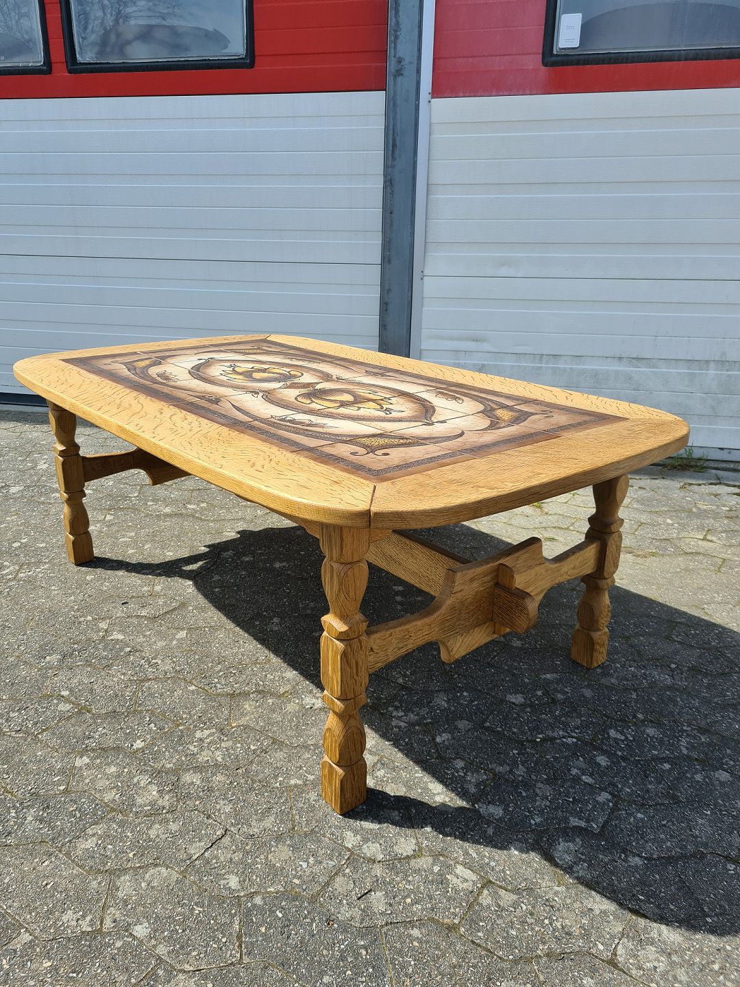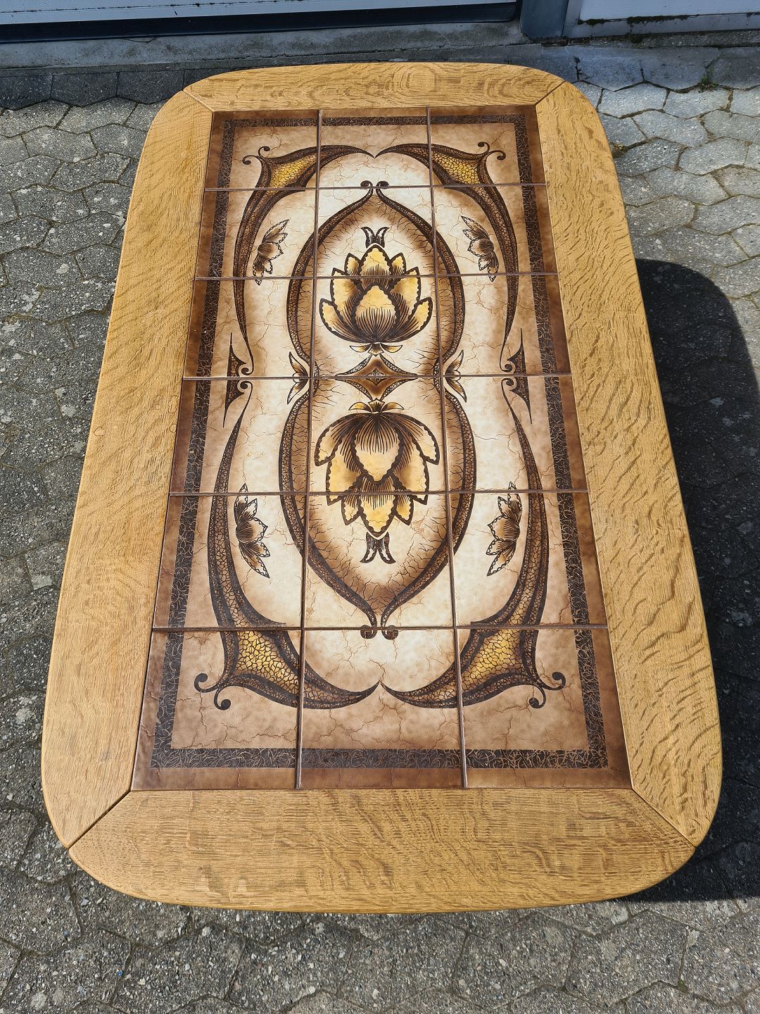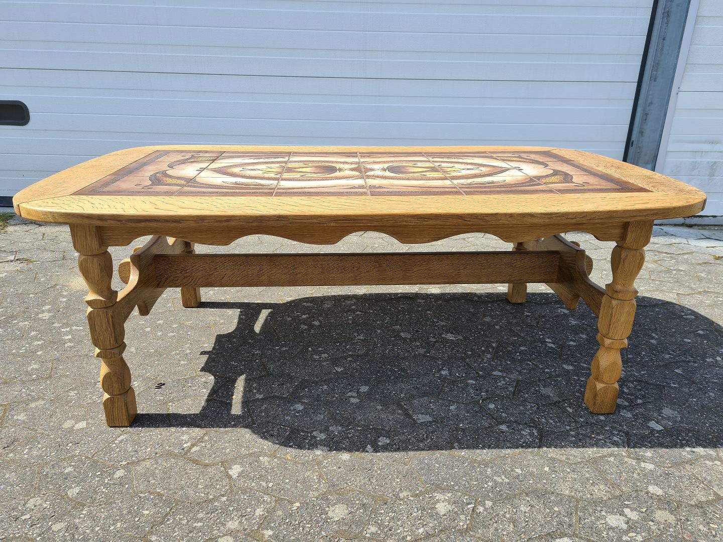 Sofabord i massivt egetræ med kakler, fra 1980erne.