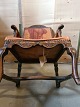 Antik amstol i egetræ, fra 1850erne. Denhar brugsspor og defekt læderbetræk. Ryghøjde 114cm Sædehøjde 41cm Emne nummer: 75493