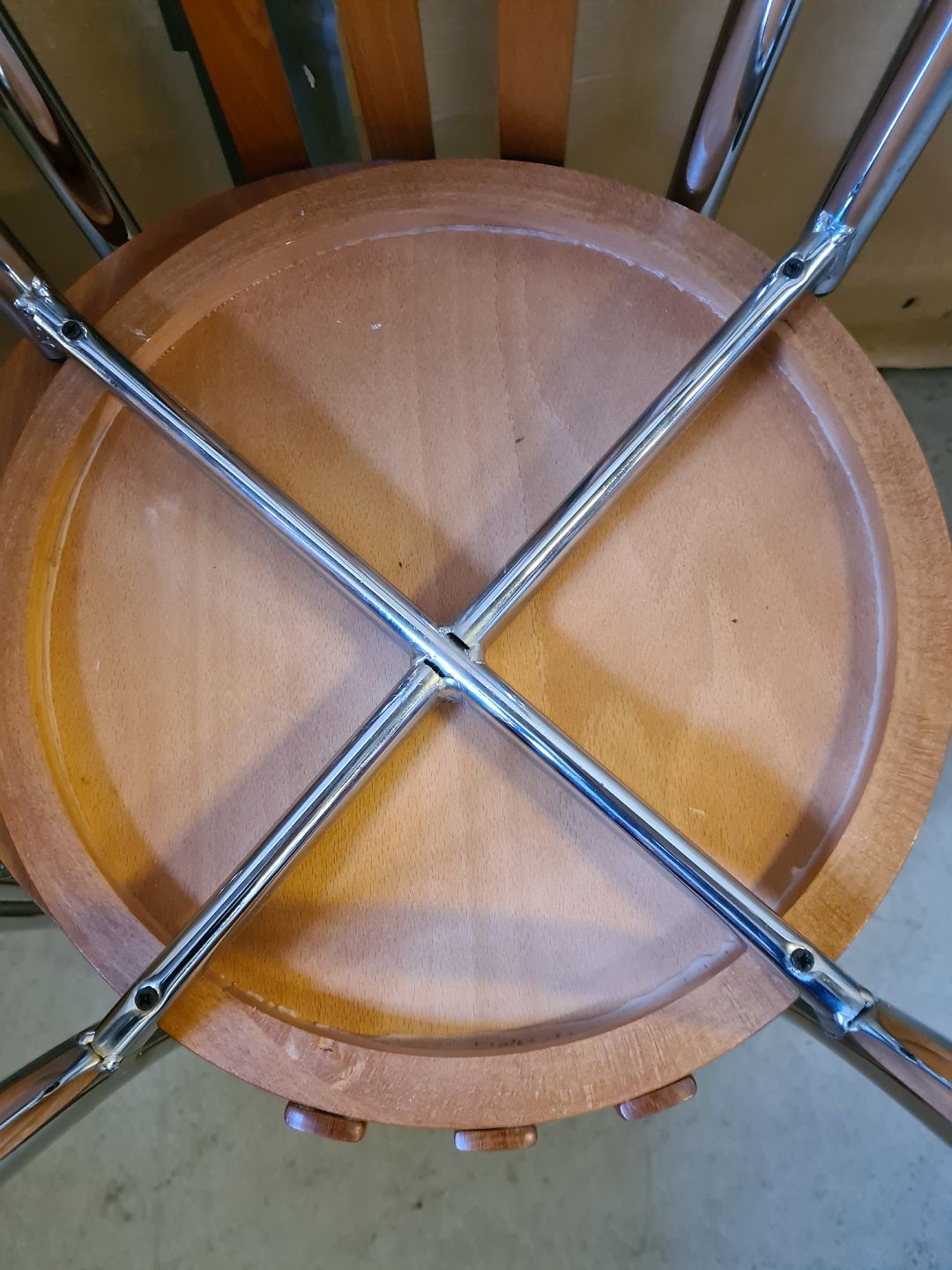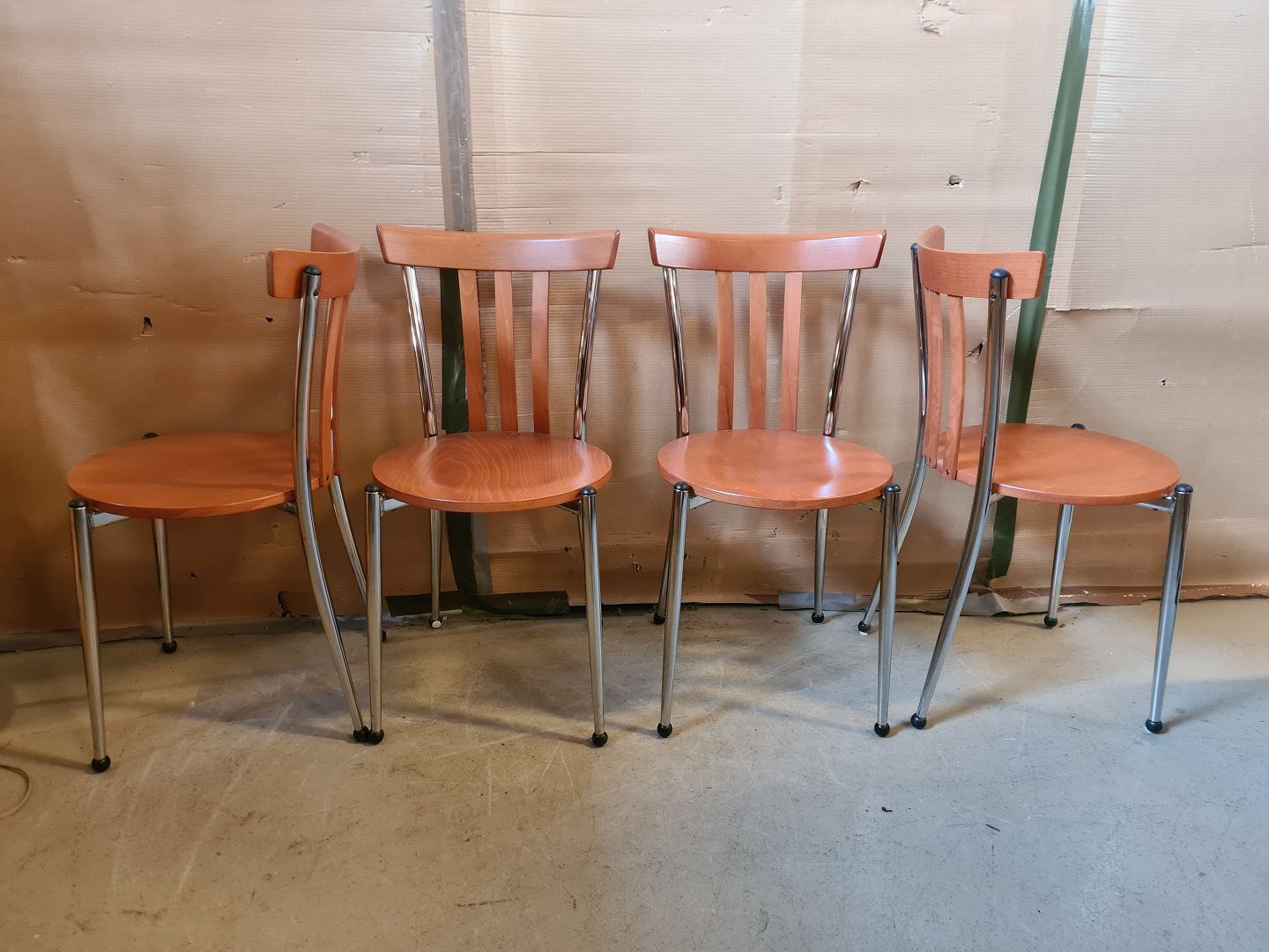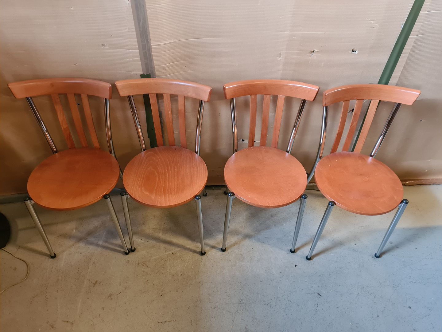 4 Stole i metal og træ, af nyere dato.