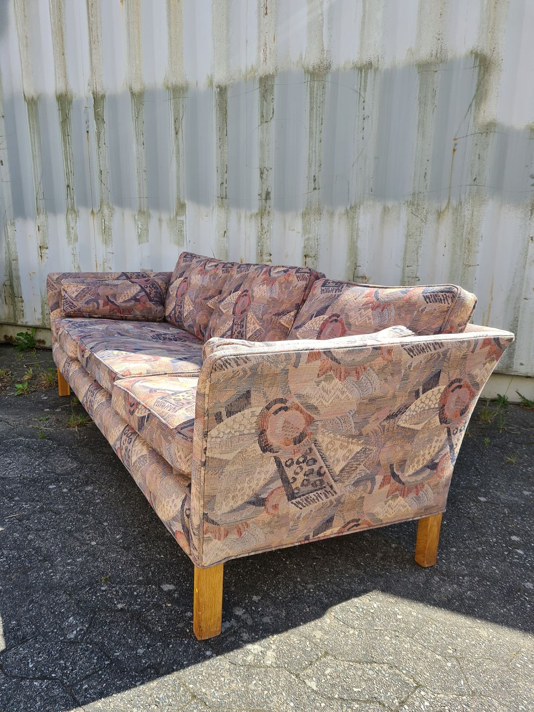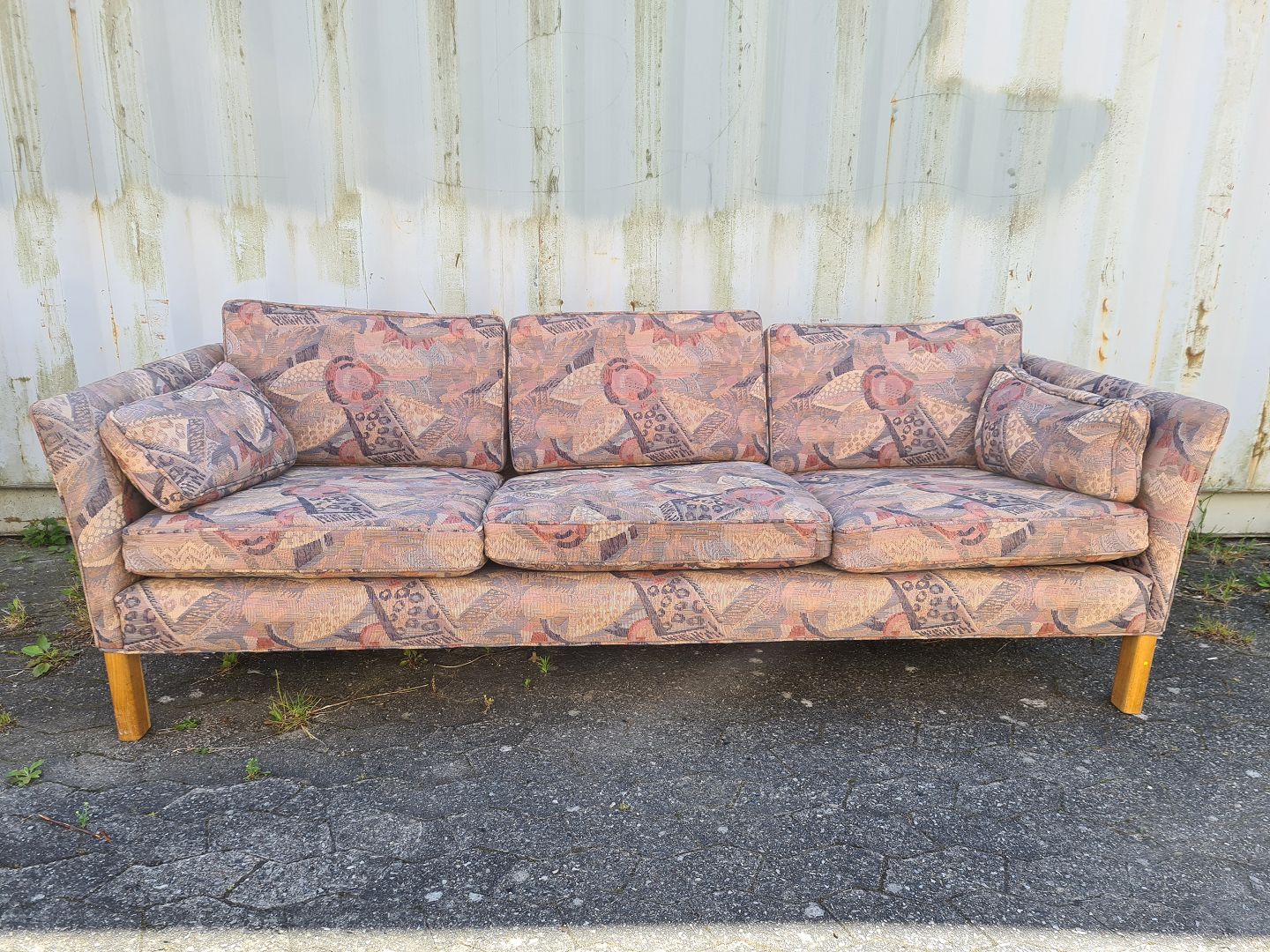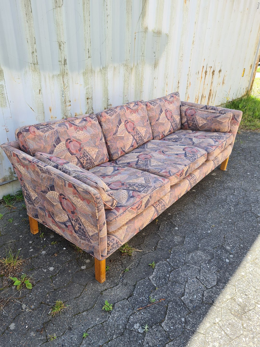 3 Personers Sofa med løse hynder, fra 1990erne. Den har brugsspor. Ryghøjde 72cm Bredde 212cm Dybde 83cm Sædehøjde 43cm Emne nummer: 75635