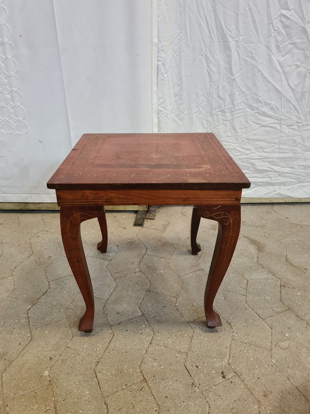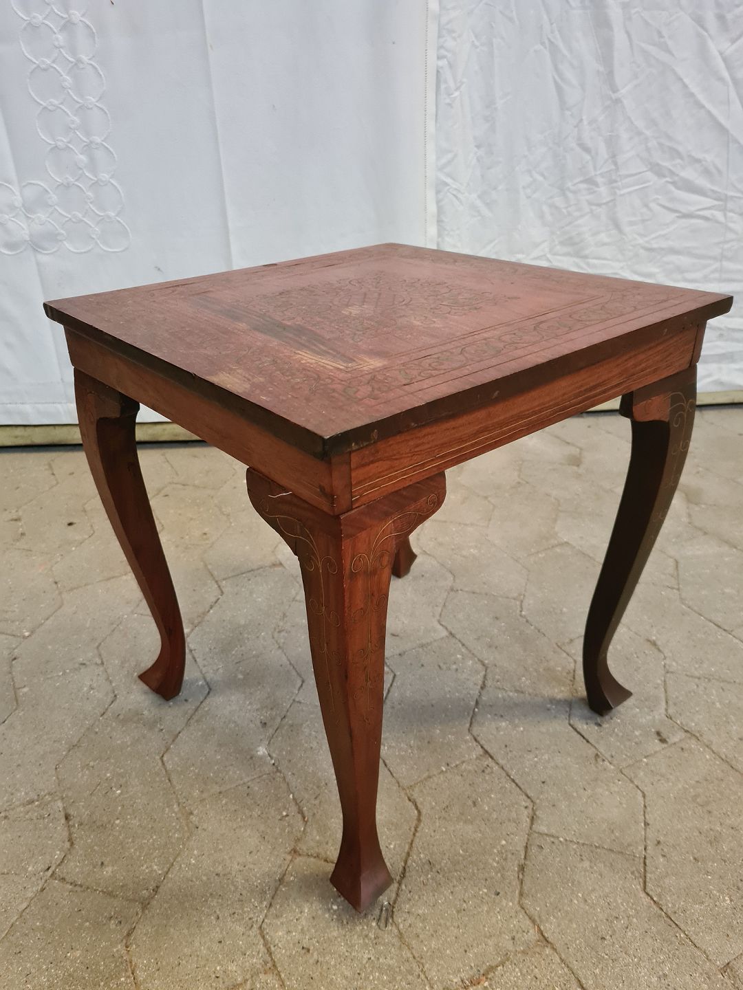 Lampebord i massivt træ med messing indlæg, fra 1990erne. Det har brugsspor. Højde 43cm Bredde 40cm Dybde 40cm Emne nummer: 90742