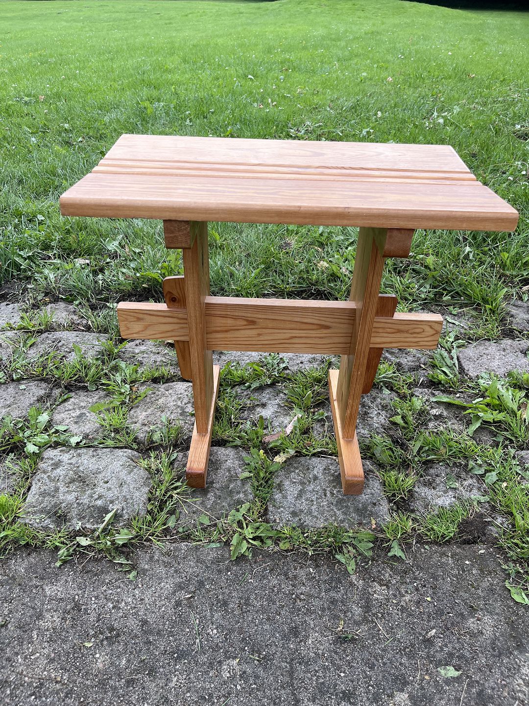 Skammel i massiv fyrtræ Står i pæn brugtstand. Højde 47 cm. Bredde 50 cm. Dybde 32 cm. Se også 80504 Emne nummer: 80505