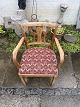 Dansk snedkermester armstol fra omkring 1930’erne i massiv egetræ og sæde i møbelstof.