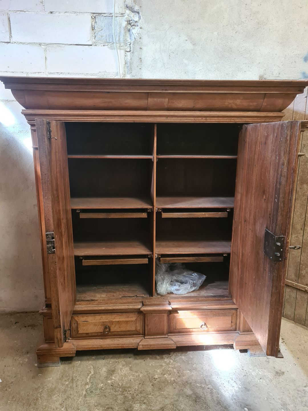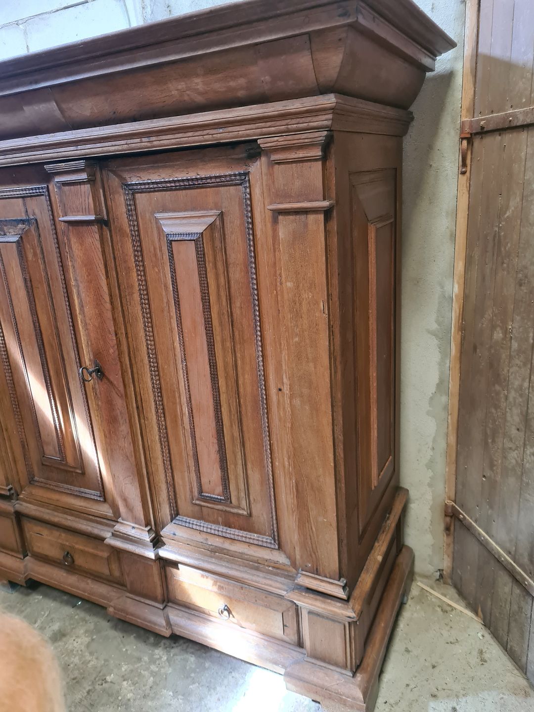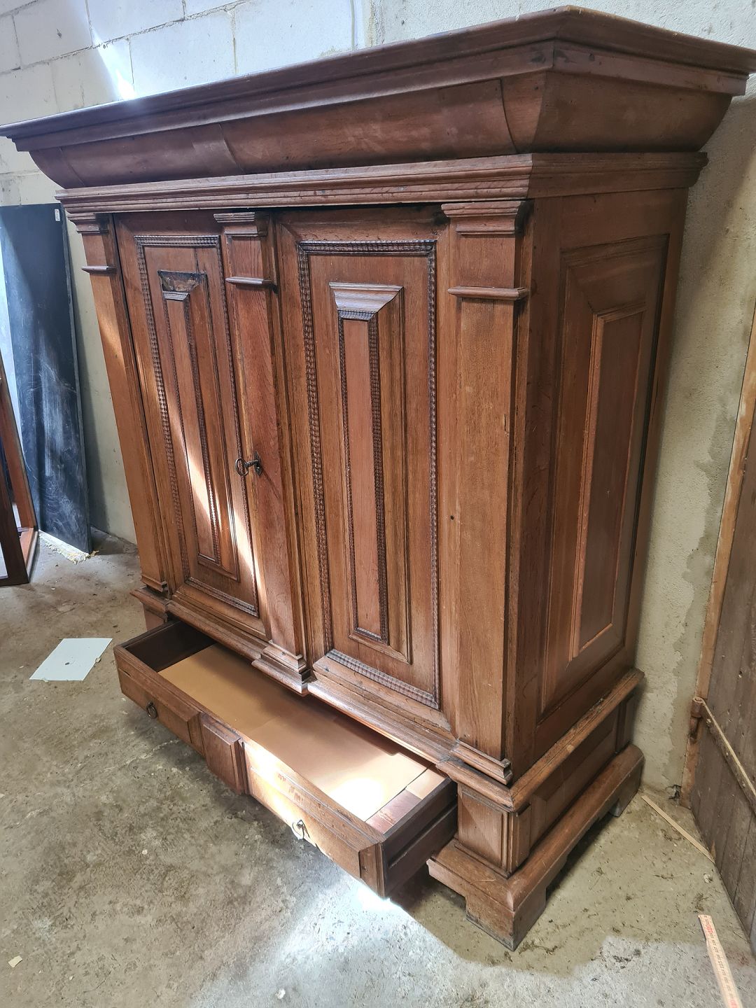 Skab i fineret og massivt egetræ, fra 1900erne. Det har brugsspor og små defekter. Højde 118cm Bredde 183cm Dybde 81cm Emne nummer: 90835