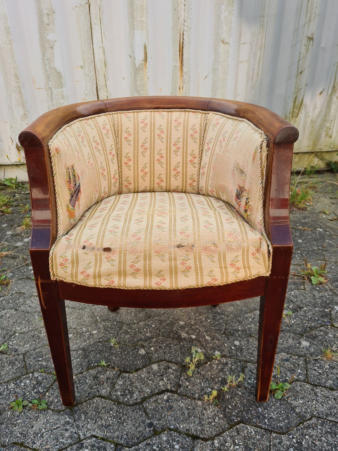 Armstol i mahogni, fra 1910erne. Betrækket er defekt. Ryghøjde 76cm Sædehøjde 47cm Emne nummer: 75791