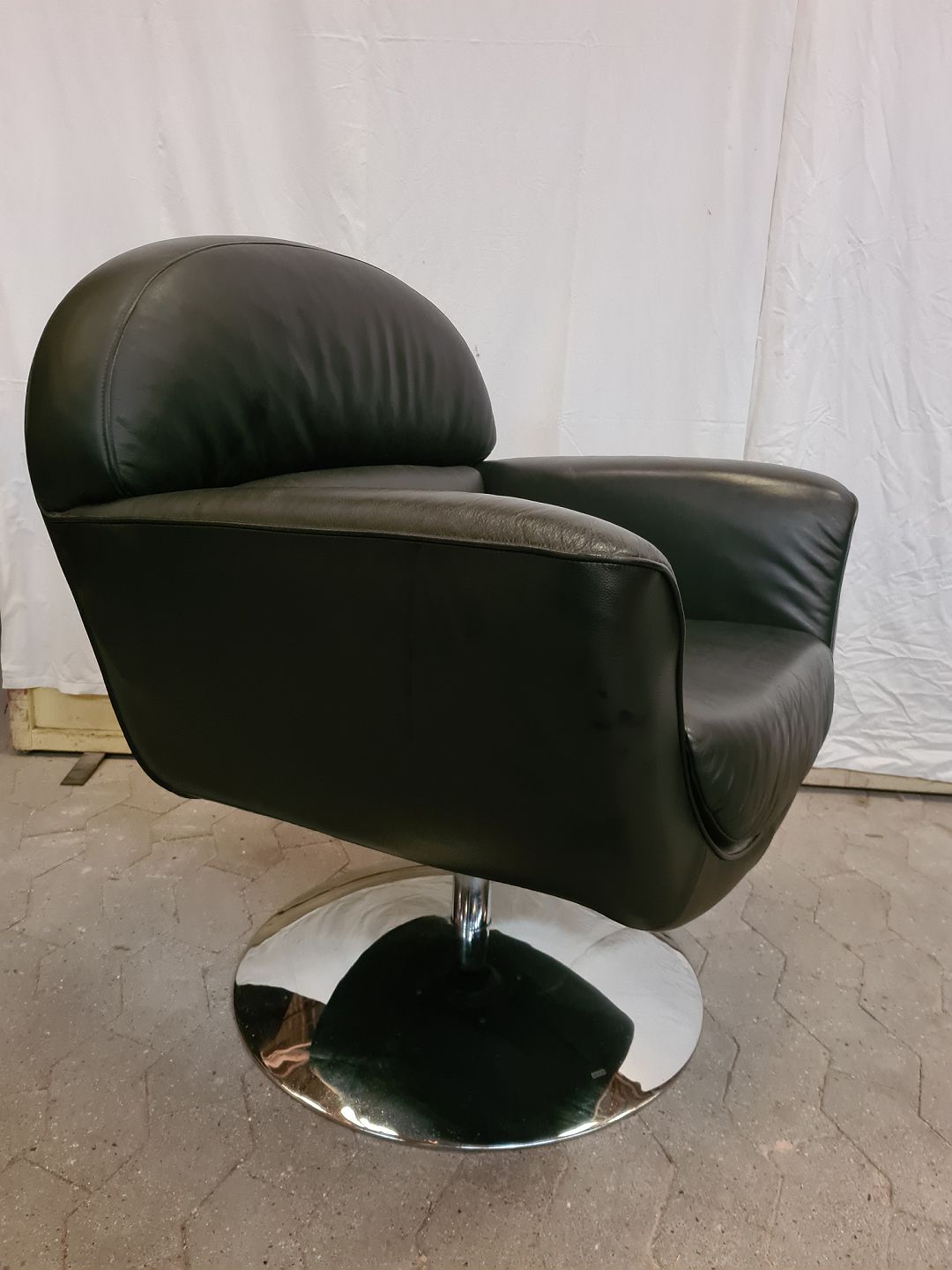 Lænestol i metal og kunstlæder, fra 2010erne. Den har små brugsspor. Ryghøjde 88cm Sædehøjde 46cm Emne nummer: 90875