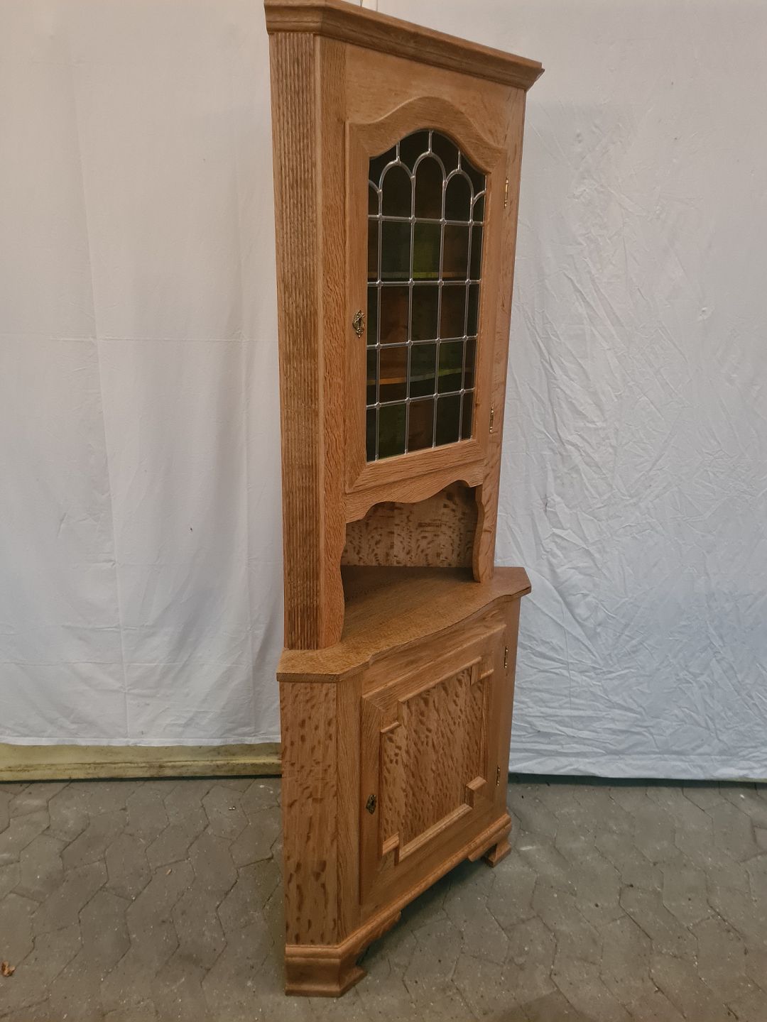 Hjørneskab i fineret egetræ, fra 1980erne.