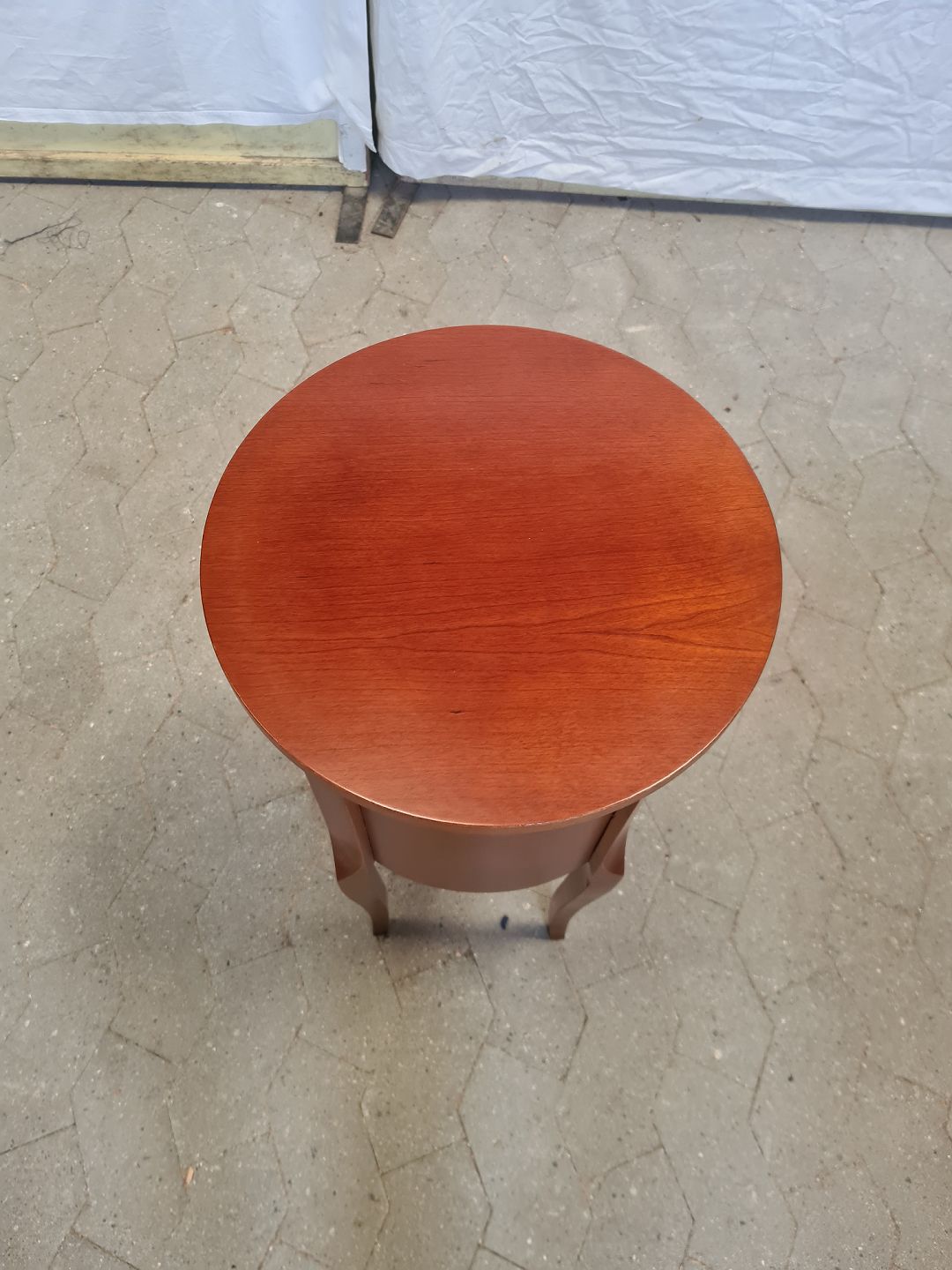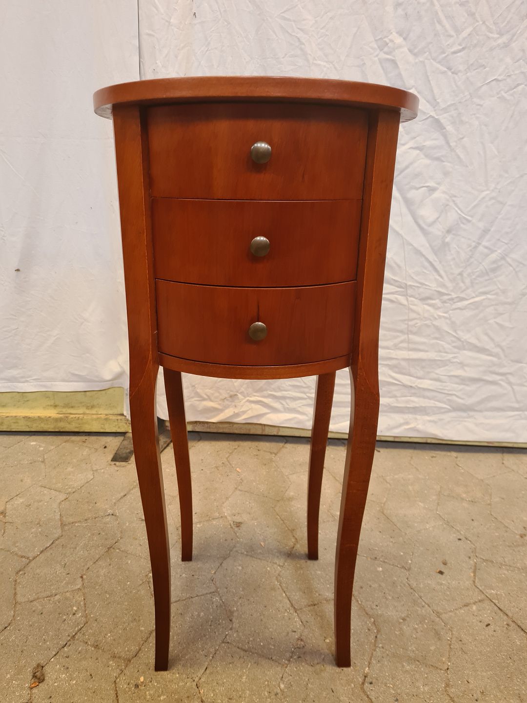 Rund kommde i fineret bøgetræ, fra 1990erne. Den har små brugsspor. Højde 68cm Diameter 34cm Emne nummer: 90961